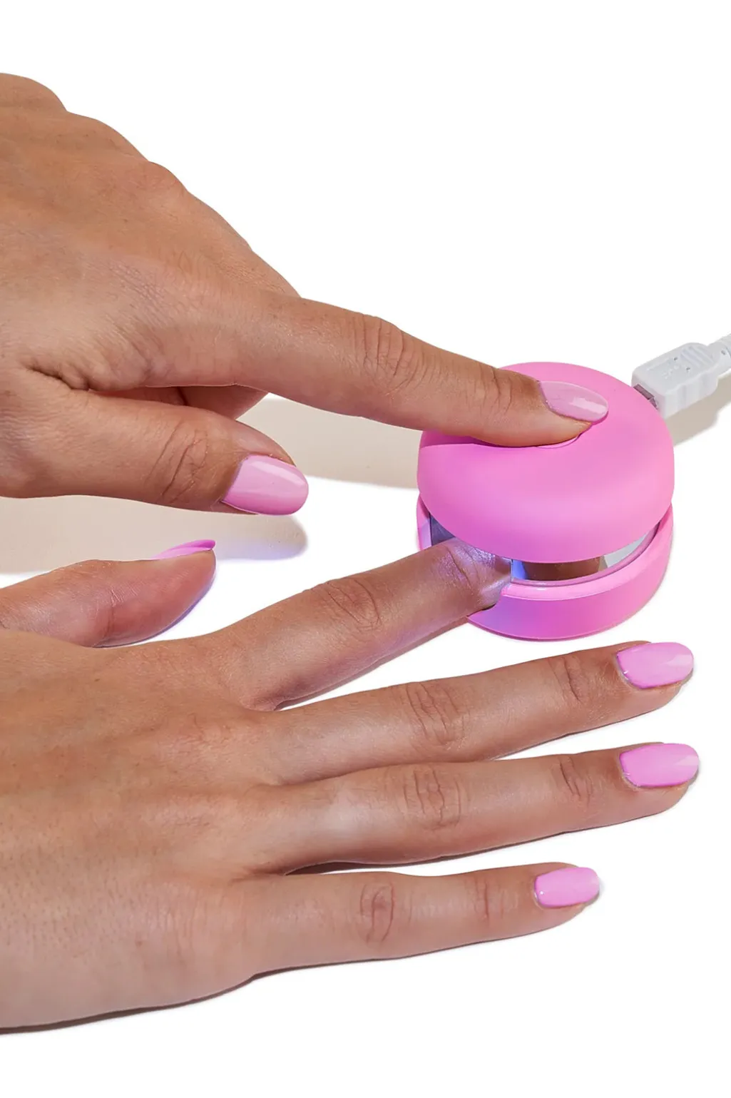 Gel manicure kit med LED-lampe og pink gelneglelak. Udviklet af professionelle neglesaloner til hjemmebrug med et holdbart resultat.