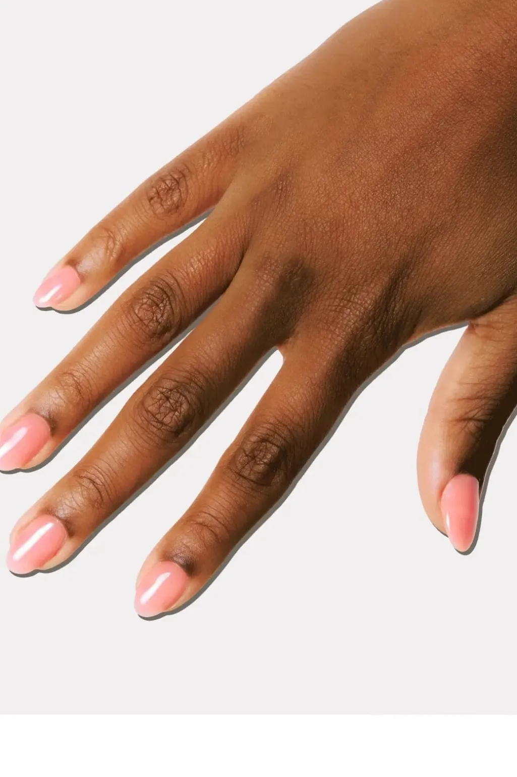 Gelneglelak på 8,5 ml med en transparent ferskenfarvet nuance. Lakken kombinerer base coat, farve og top coat i én flaske.