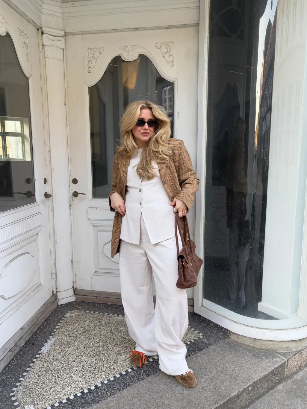 Ærmeløs vest fra Global Funk i en lys ecru-farve. Vesten har en rund hals, knapper foran og dekorative syninger, der giver et rent og enkelt udtryk.