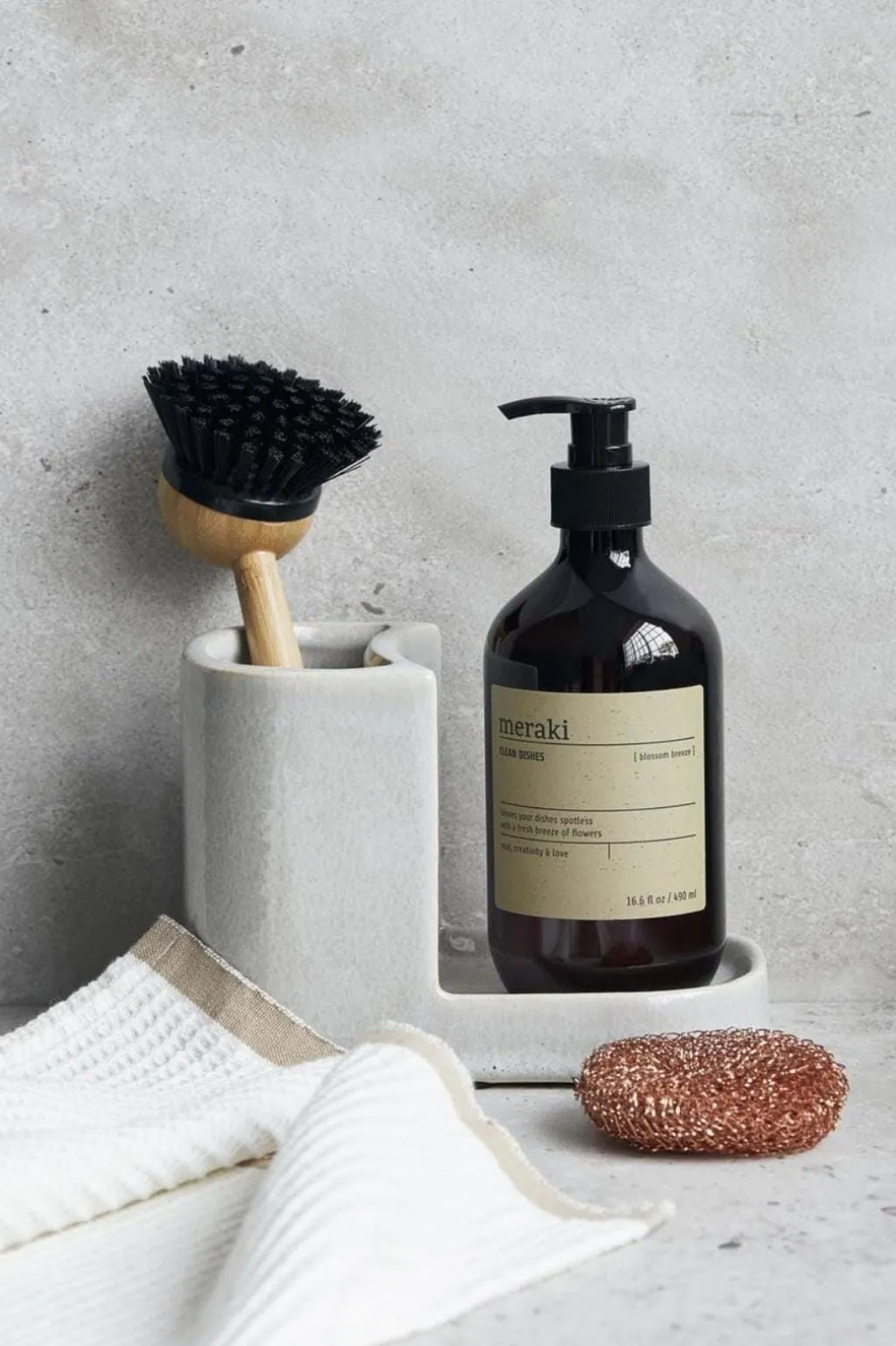 Det er nemt at give en gave og sprede glæde med en gaveæske. Denne æske fra Meraki består af en opvaskebørste og et opvaskemiddel. Børsten er designet med et bambusskaft, mens hovedet kan udskiftes. Opvaskemidlet hedder Blossom Breeze, er Svanemærket og har en skøn duft af appelsin og lemon.