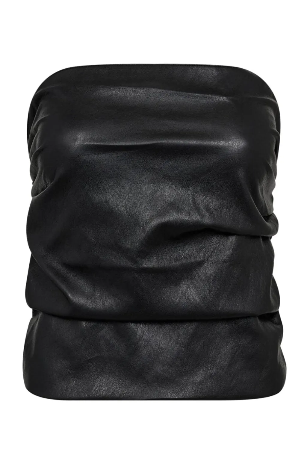 Sort corsage fra Co´Couture lavet af kunstlæder. Denne corsage har et off-shoulder-design og en tætsiddende pasform.