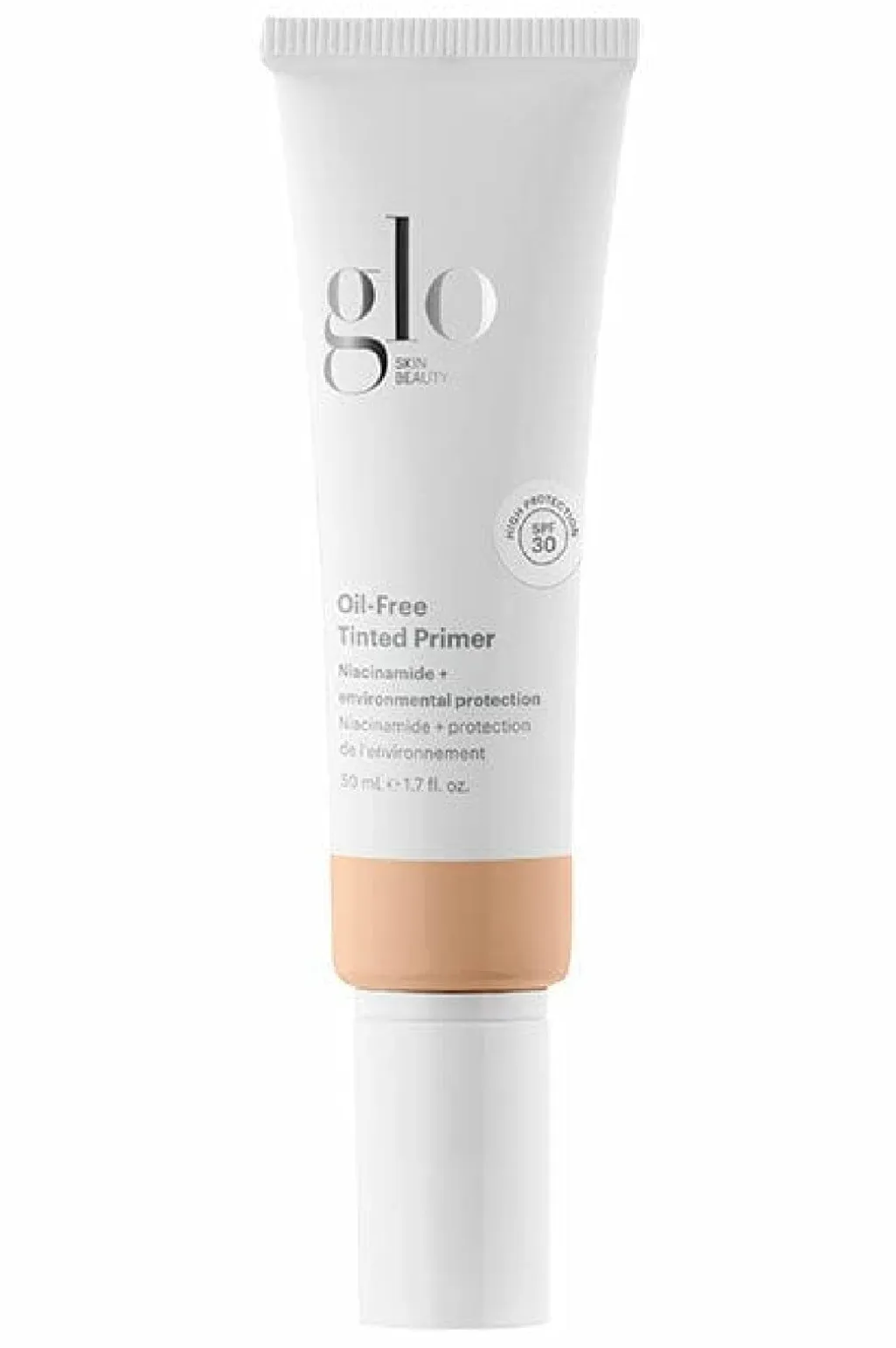 Oliefri primer fra Glo Skin Beauty i en lys nuance med SPF 30. En cremet primer, der giver en mat finish og jævn hudtone med let dækning.