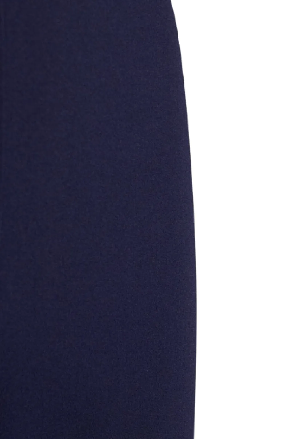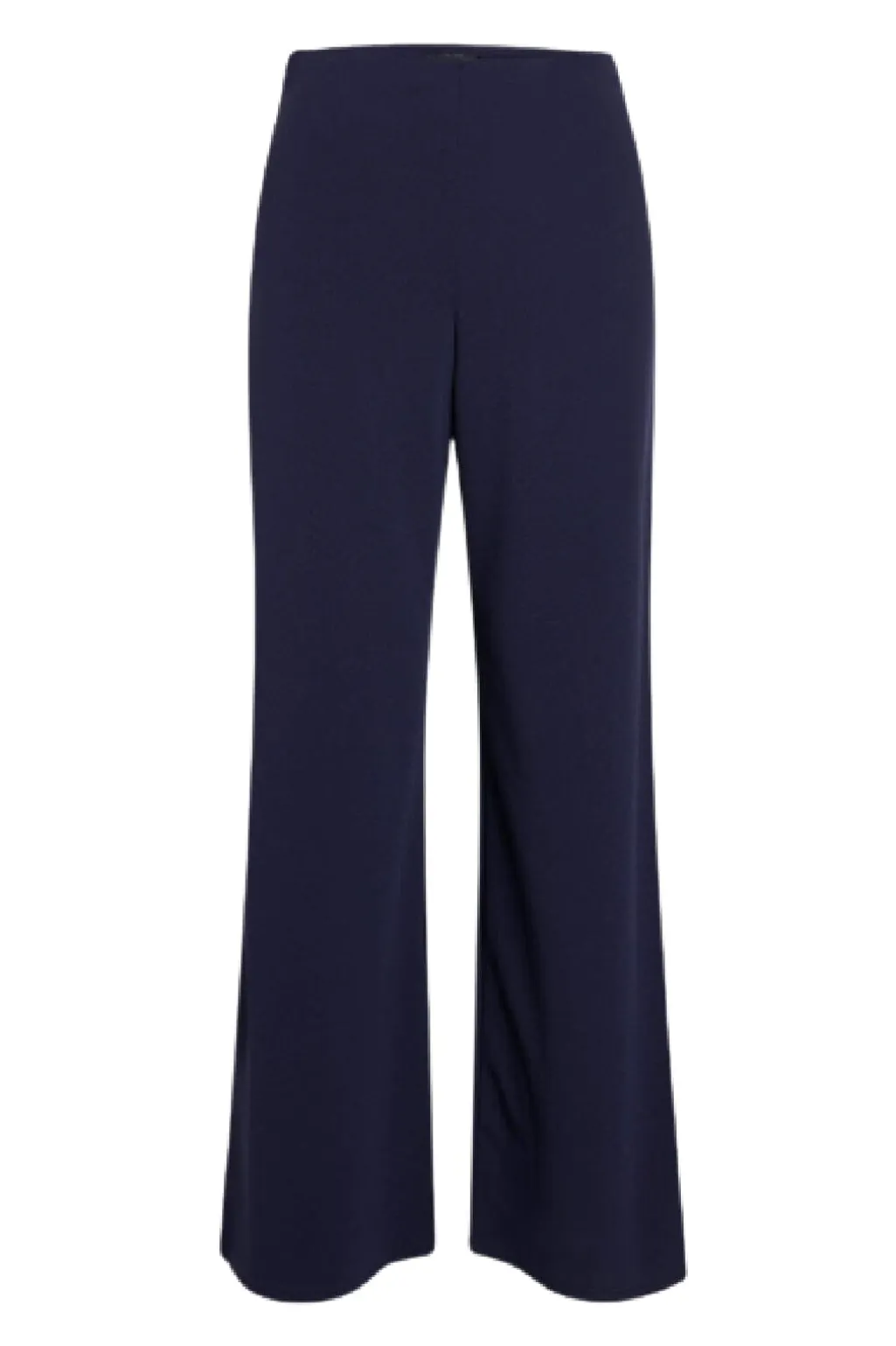Mørkeblå bukser fra Sisters Point med brede ben og høj talje. Bukserne har en klassisk stil med elastik i taljen og et enkelt design uden dekorationer.