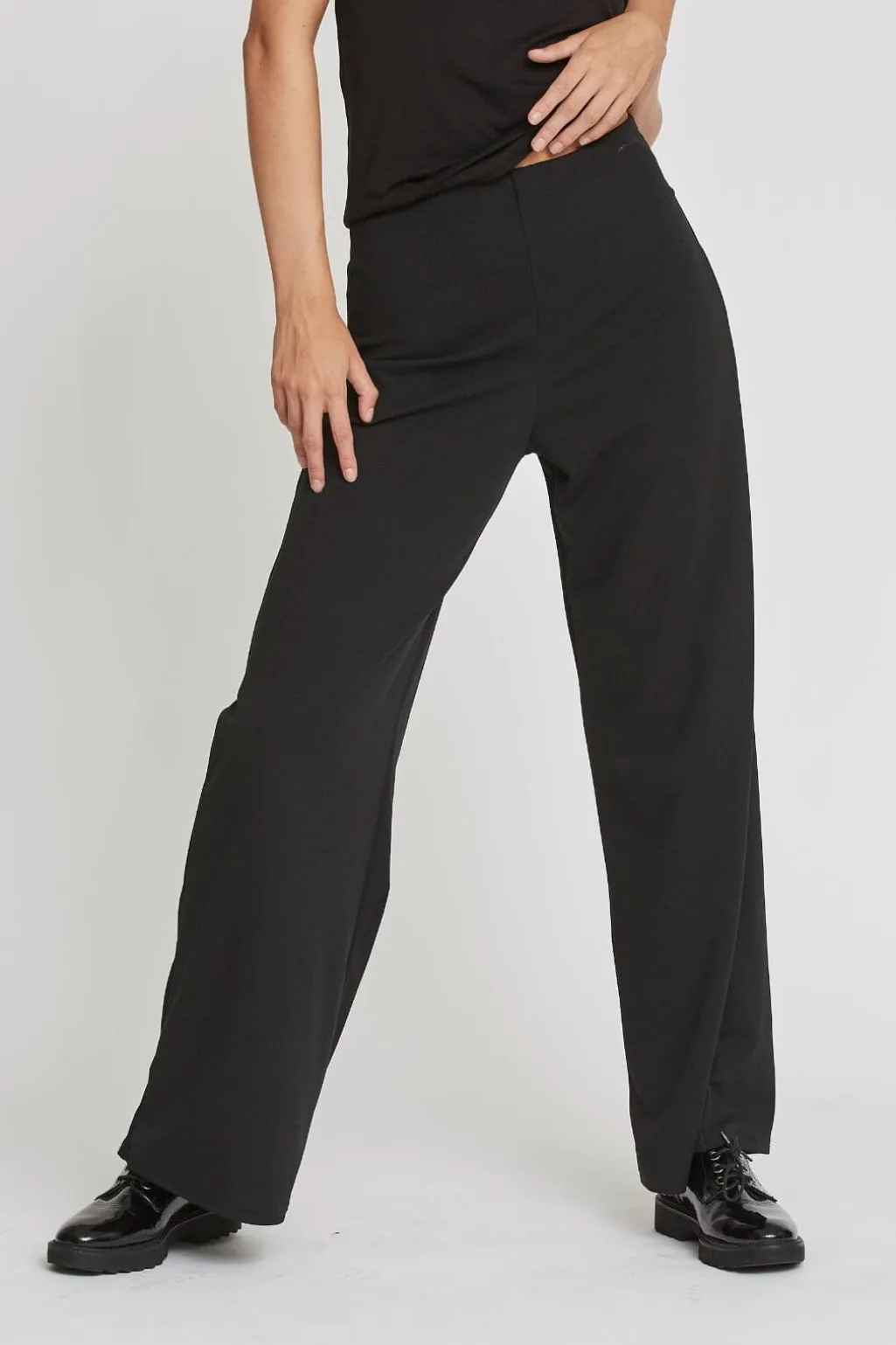 Sorte bukser fra Sisters Point med høj talje og regulær pasform. De har en glat overflade og gulvlængde, som gør dem brugbare til både hjemmet og hverdagen.