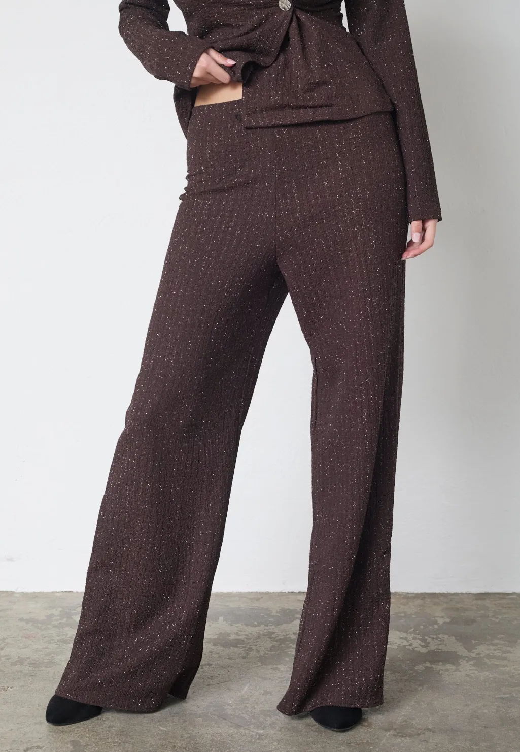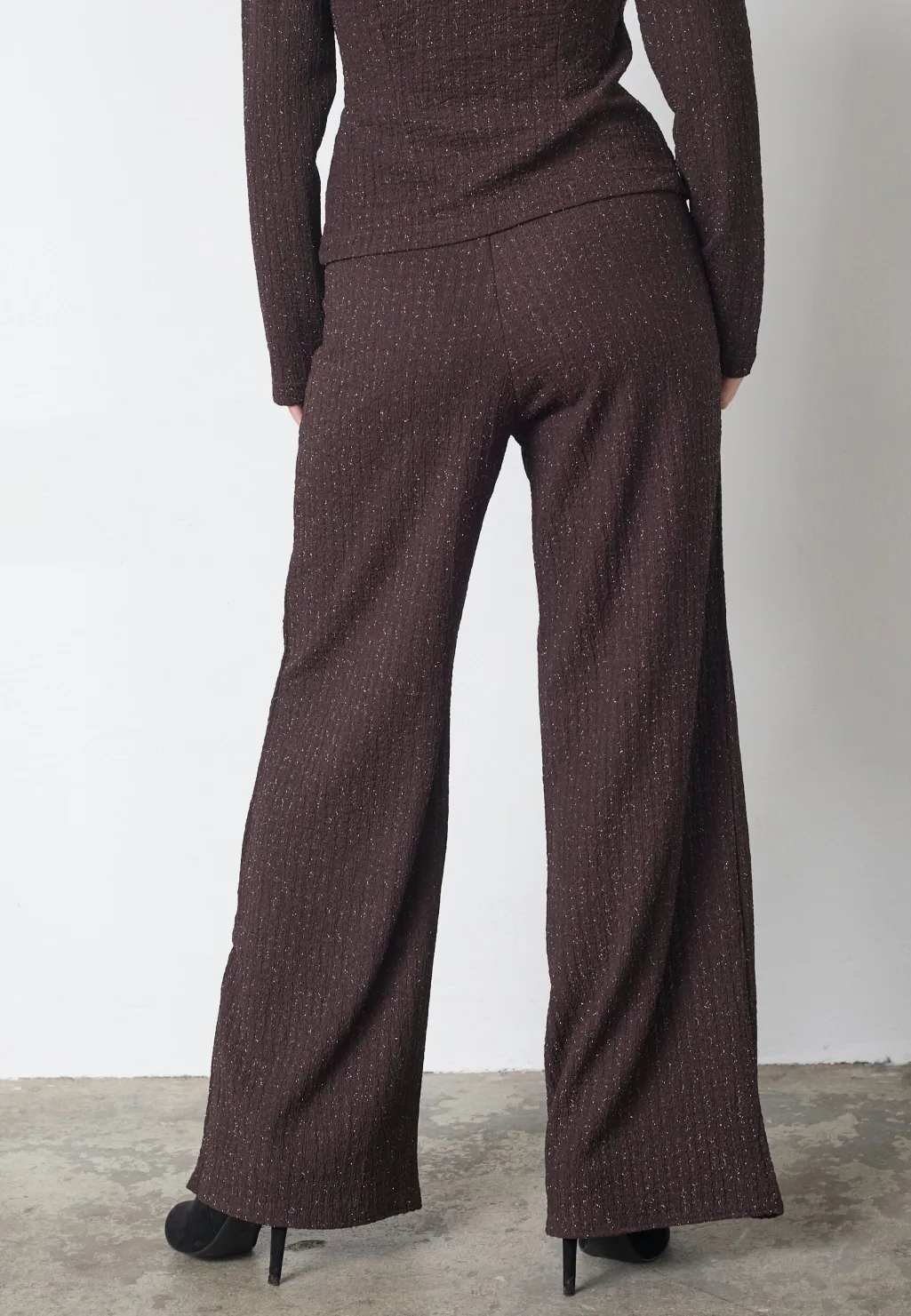 Bukser fra Sisters Point i brun farve med sølvglimt. Bukserne passer til både festlige og formelle lejligheder.