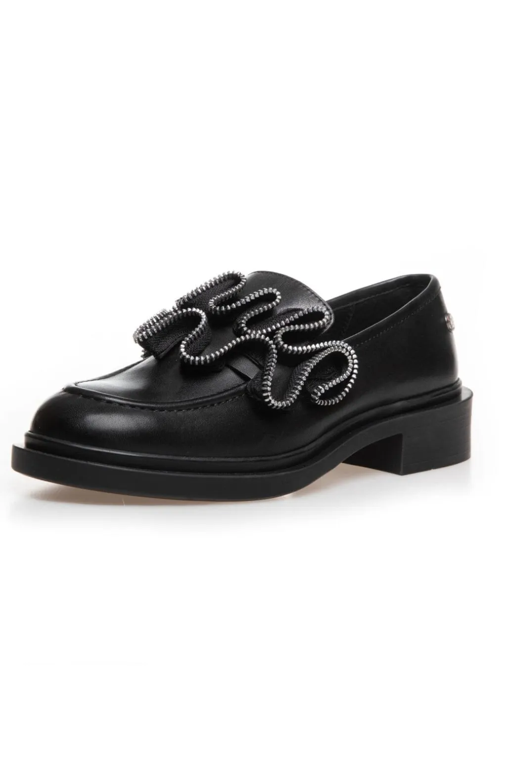 Sorte loafers fra Copenhagen Shoes i læder med rynkedetaljer på oversiden. Skoen har en rund tå og en lav hæl, der gør den praktisk til hverdagsbrug.