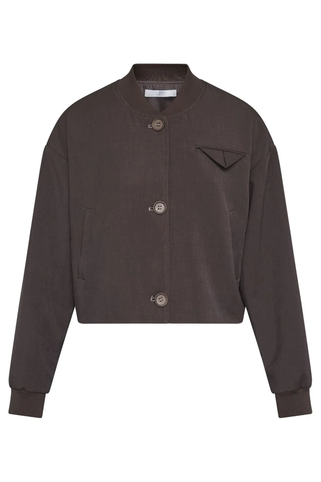 Kort jakke fra Sisters Point i en dyb chokoladebrun farve. Jakken er lavet af 96 % polyester og 4 % elastan med en løs pasform.