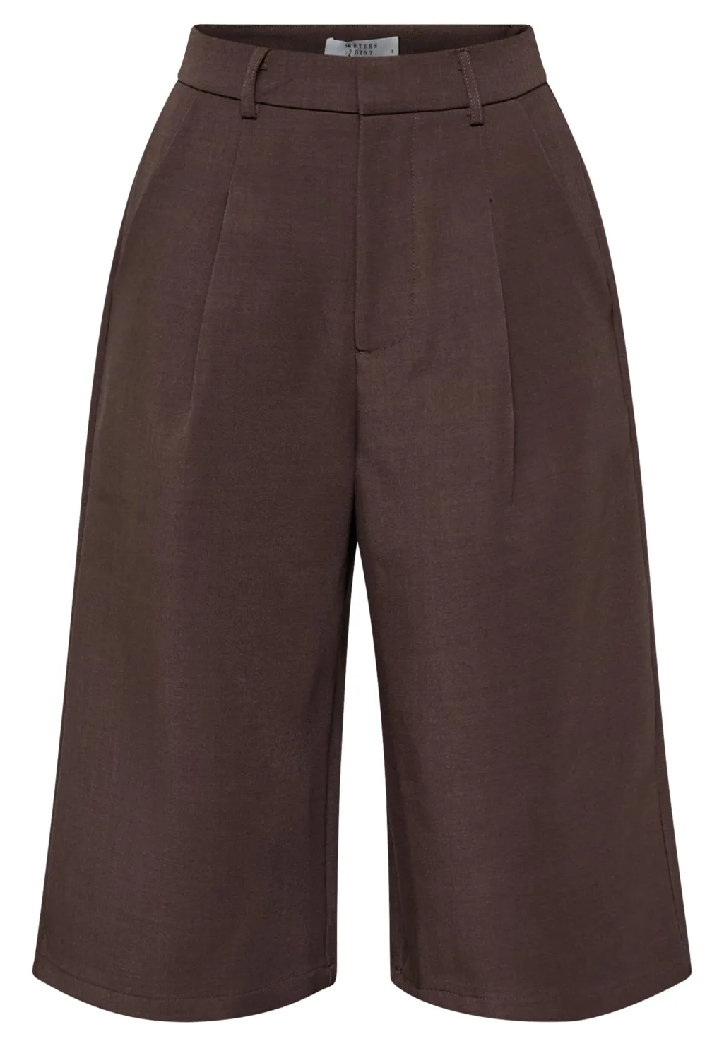 Chokoladebrune shorts fra Sisters Point, lavet af 92% polyester og 8% elastan. Shortsene har en løs pasform og går lige over knæet.