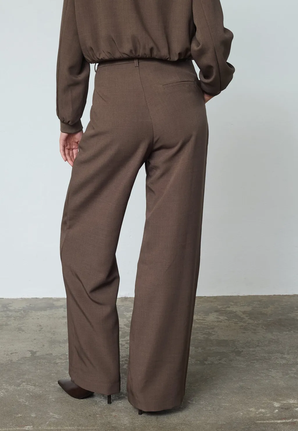Brune bukser fra Sisters Point i en jordnær teakfarve. Bukserne passer til fest, hverdag og formelle anledninger.