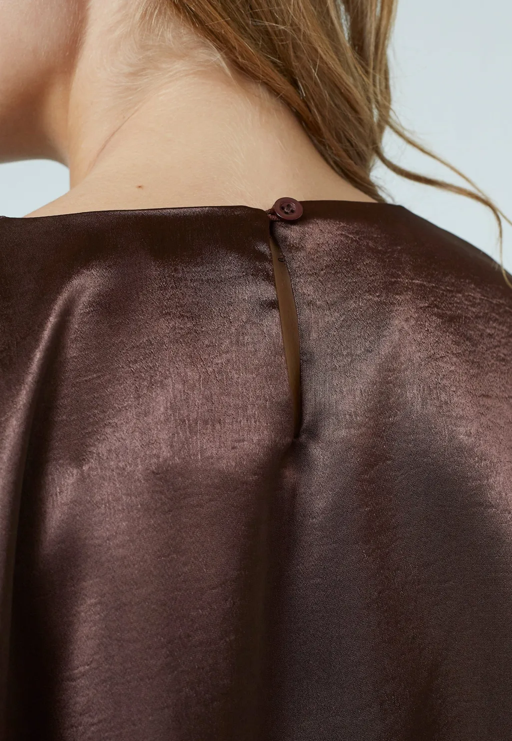 Top fra Sisters Point, lavet af skinnende brun polyester. Toppen har en løs pasform med korte, brede ærmer og en rund halsudskæring.