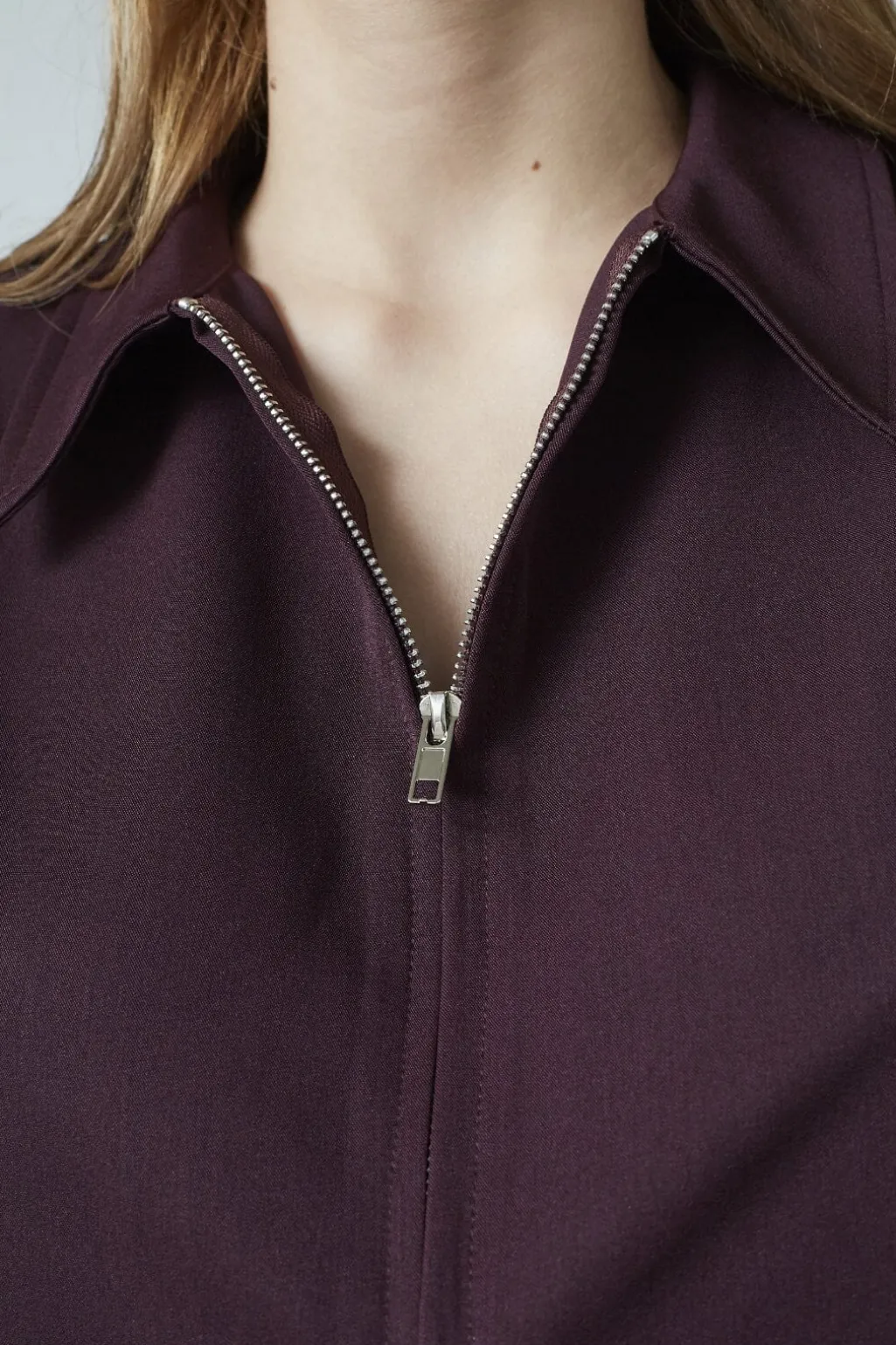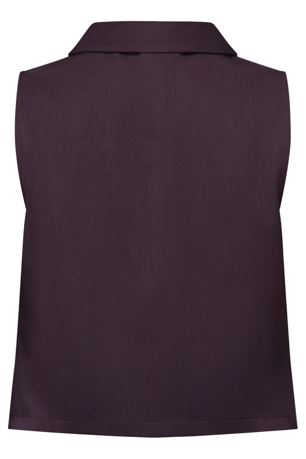 Ærmeløs top fra Sisters Point i bordeaux. Den har skjortekrave, lynlåslukning foran og en tætsiddende pasform, der fremhæver kroppens linjer.