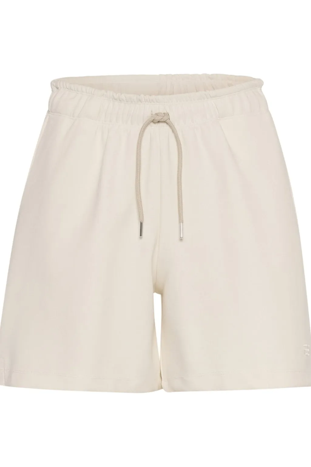 Cremefarvede shorts fra Gestuz med en lige pasform. Shortsene har elastik og snøre i taljen, og stoffet er i en blød bomuldsblanding, der giver god bevægelsesfrihed.