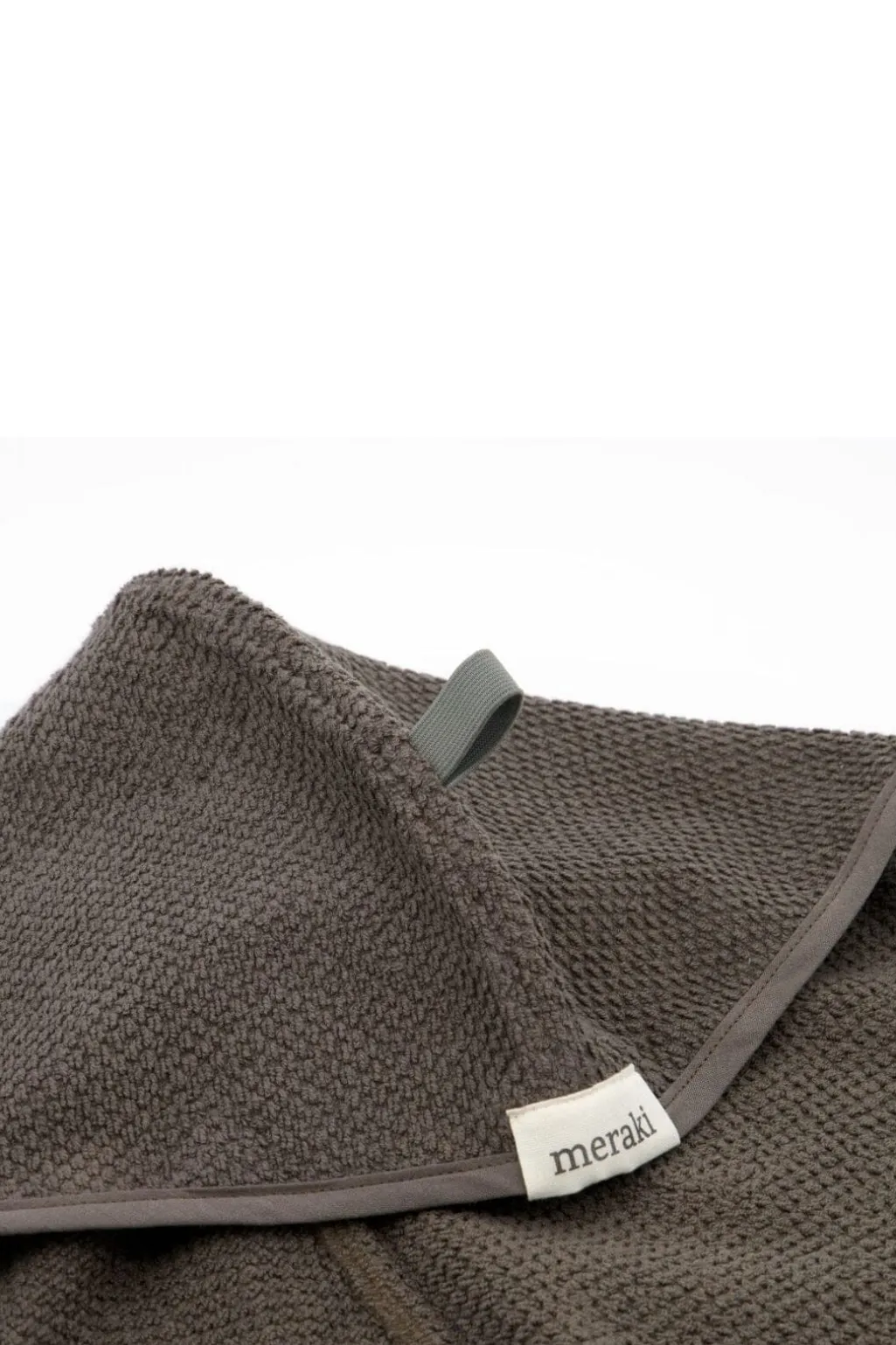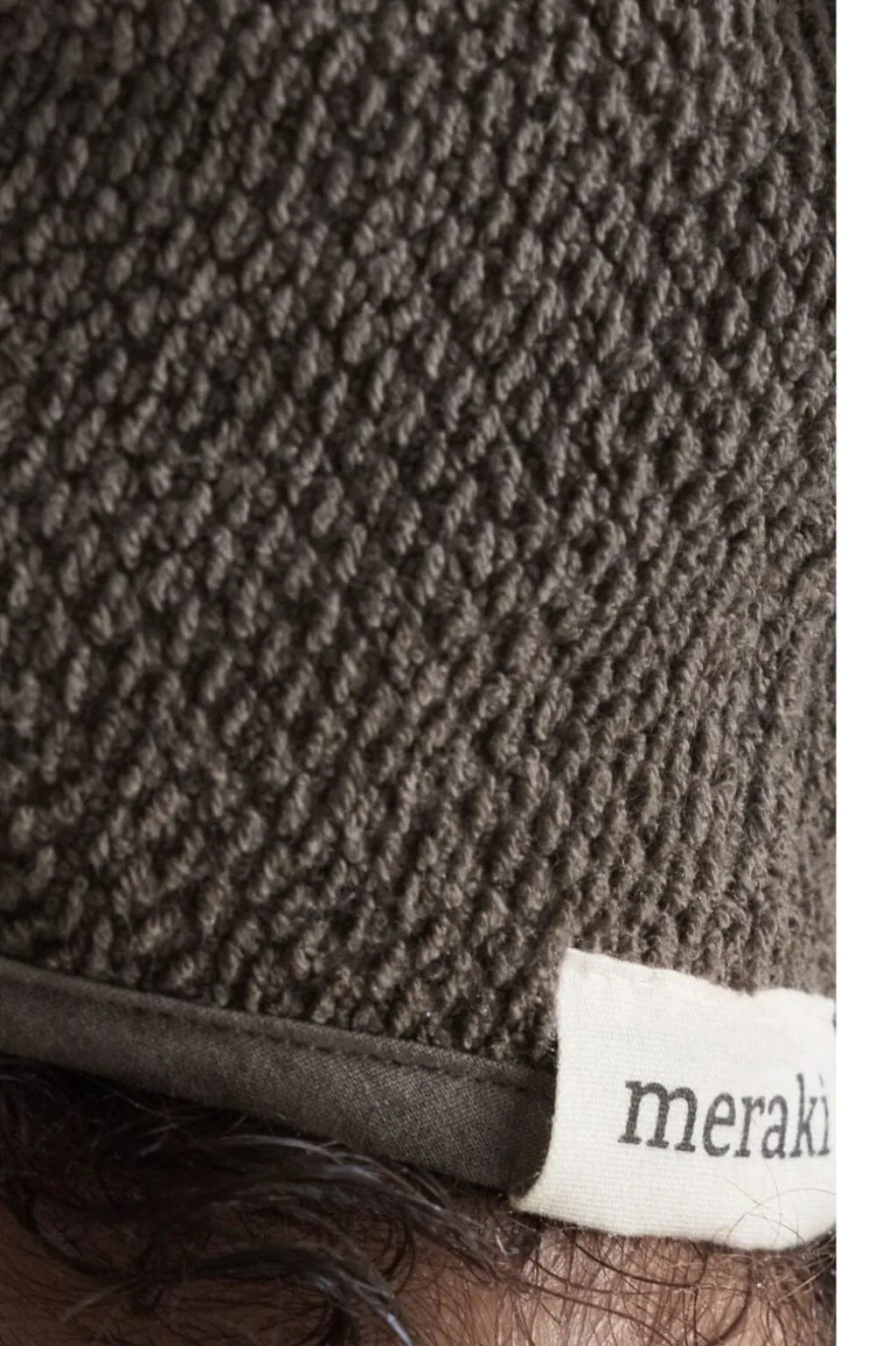 Et hårhåndklæde i mørkegrøn med frotté på begge sider. Den blødgørende effekt gør håndklædet skånsomt mod håret under tørring.