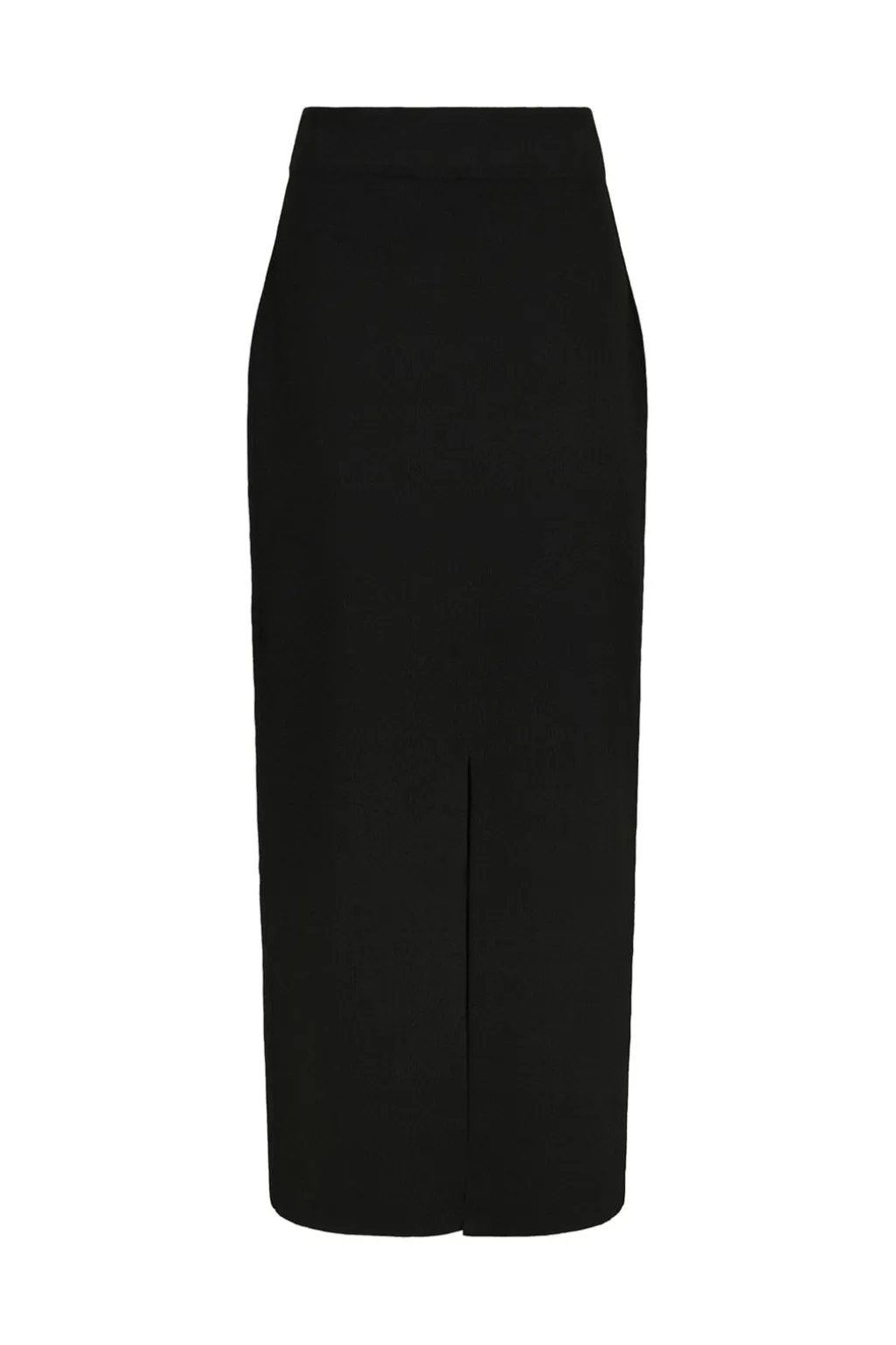 Sort strikket nederdel fra Neo Noir i fast strik med stretch. Nederdelen har en lige pasform med elastisk talje og en slids bagpå, der gør den behagelig at have på.