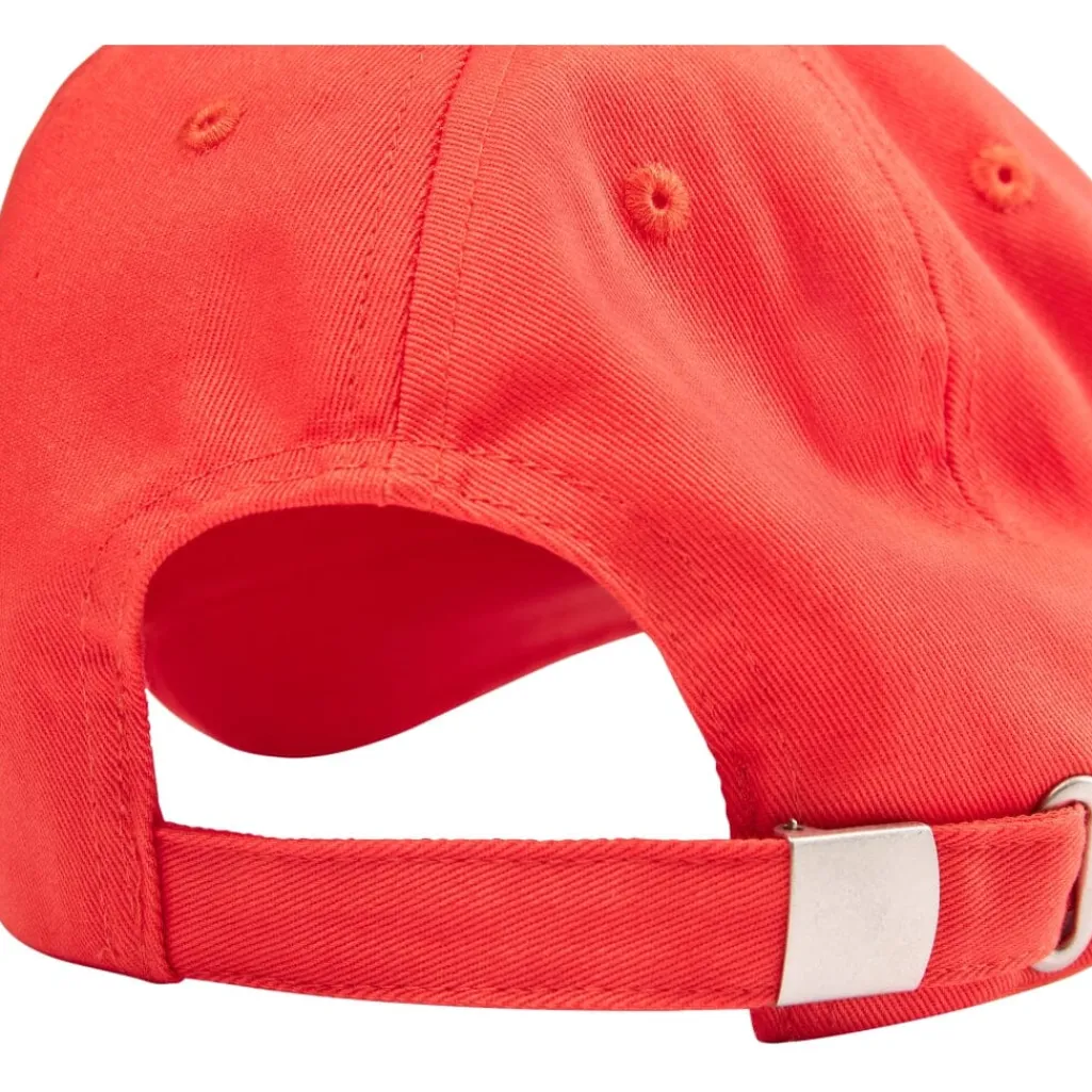 Græskarorange kasket fra H2O med broderet logo på fronten. Kasketten har ventilationshuller i toppen og en justerbar metalspænde i nakken.