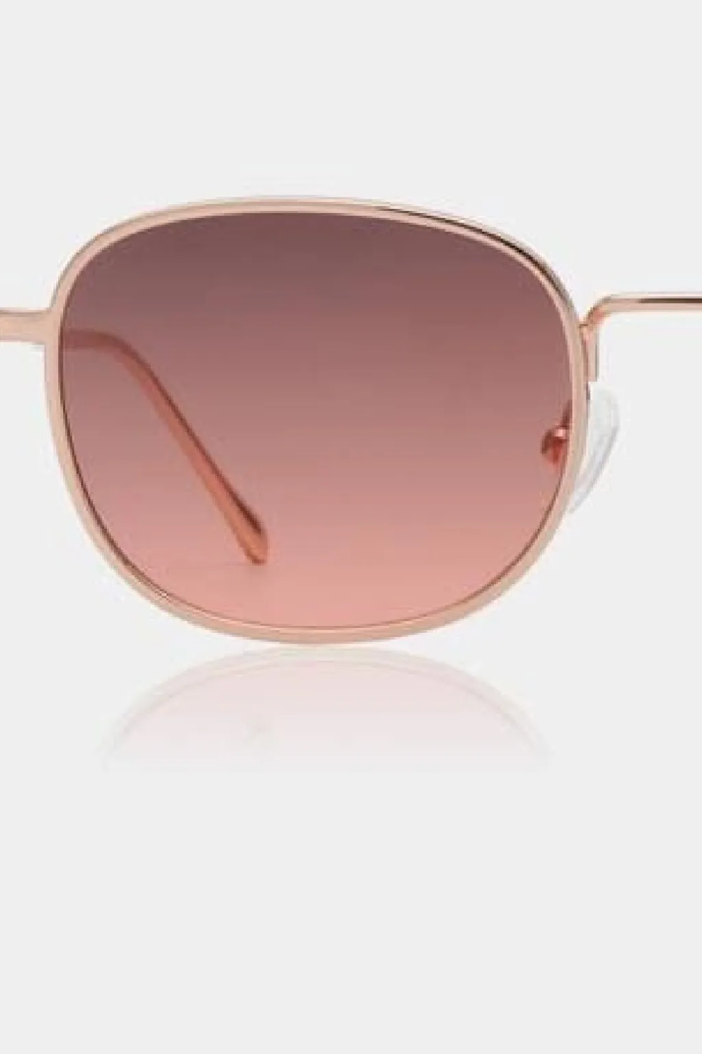 Solbriller fra A. Kjærbede med firkantet stel i rosegold metal. Designet er inspireret af 1960’ernes Hollywood med gradientlinser og en slank metalramme.