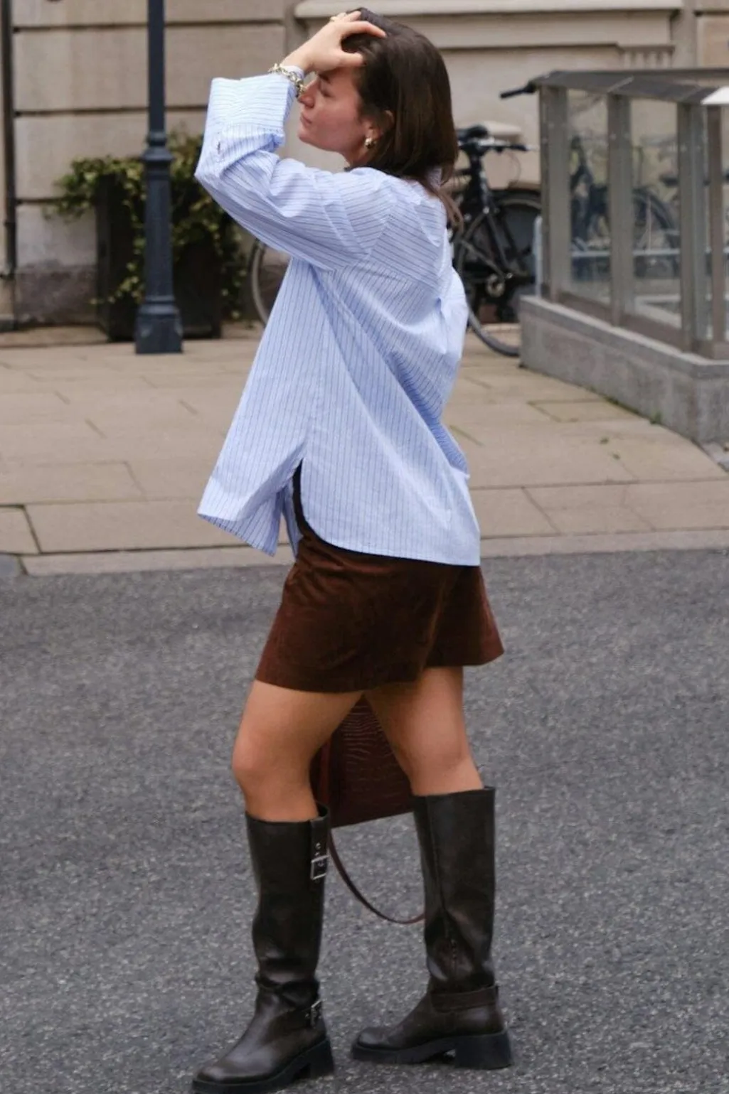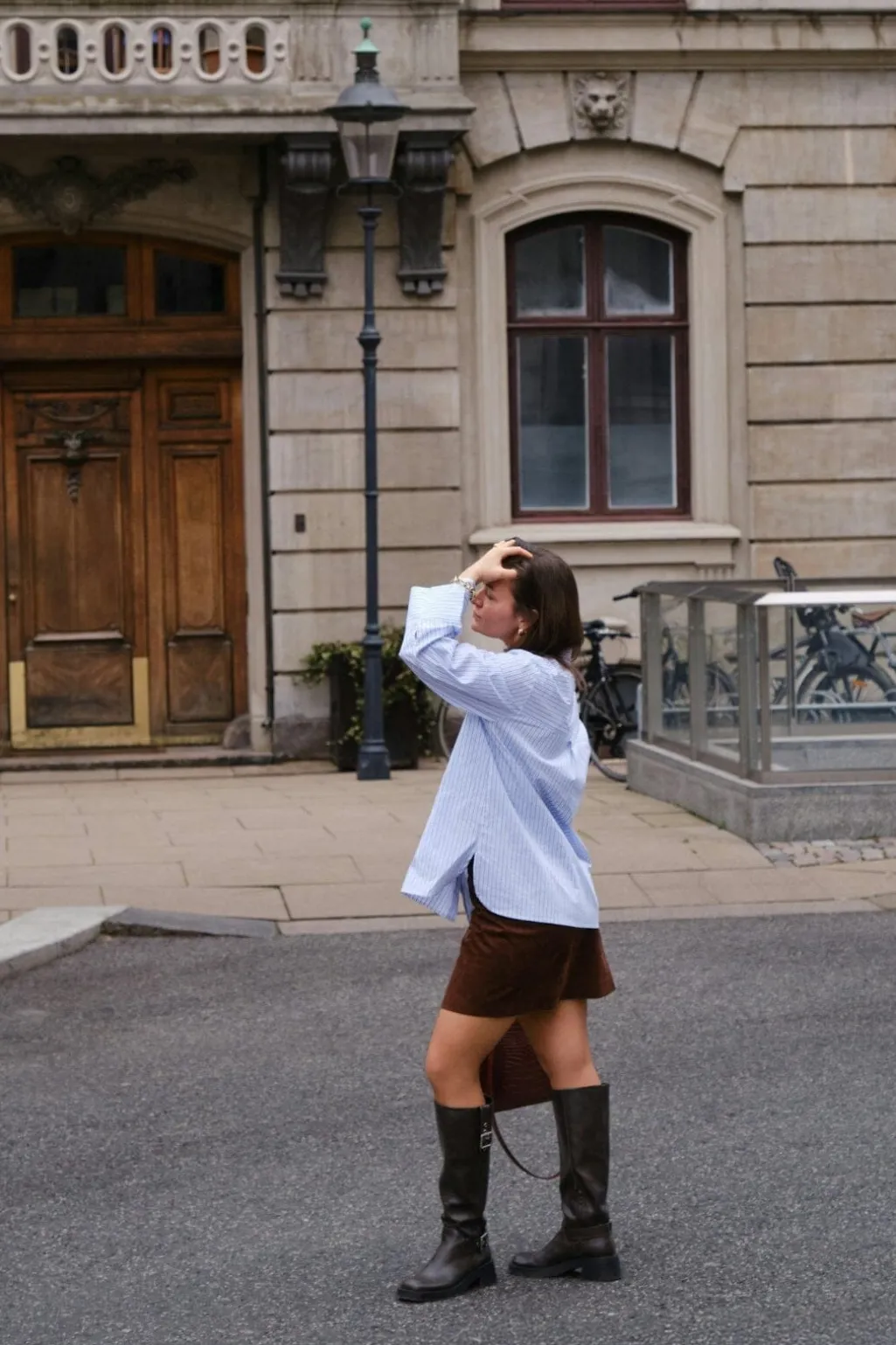 - Modellen er 176 cm høj og bærer størrelse 36