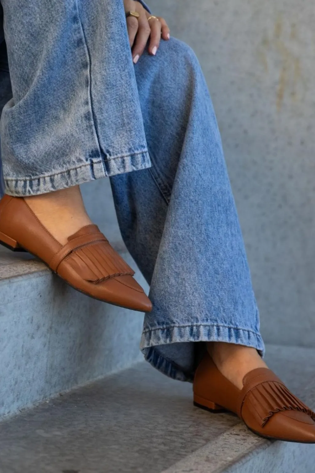 Spidse loafers fra Copenhagen Shoes i brun tobacco-farvet læder. Skoene har plisseret design på overdelen og en lav hæl, der gør dem nemme at gå i.