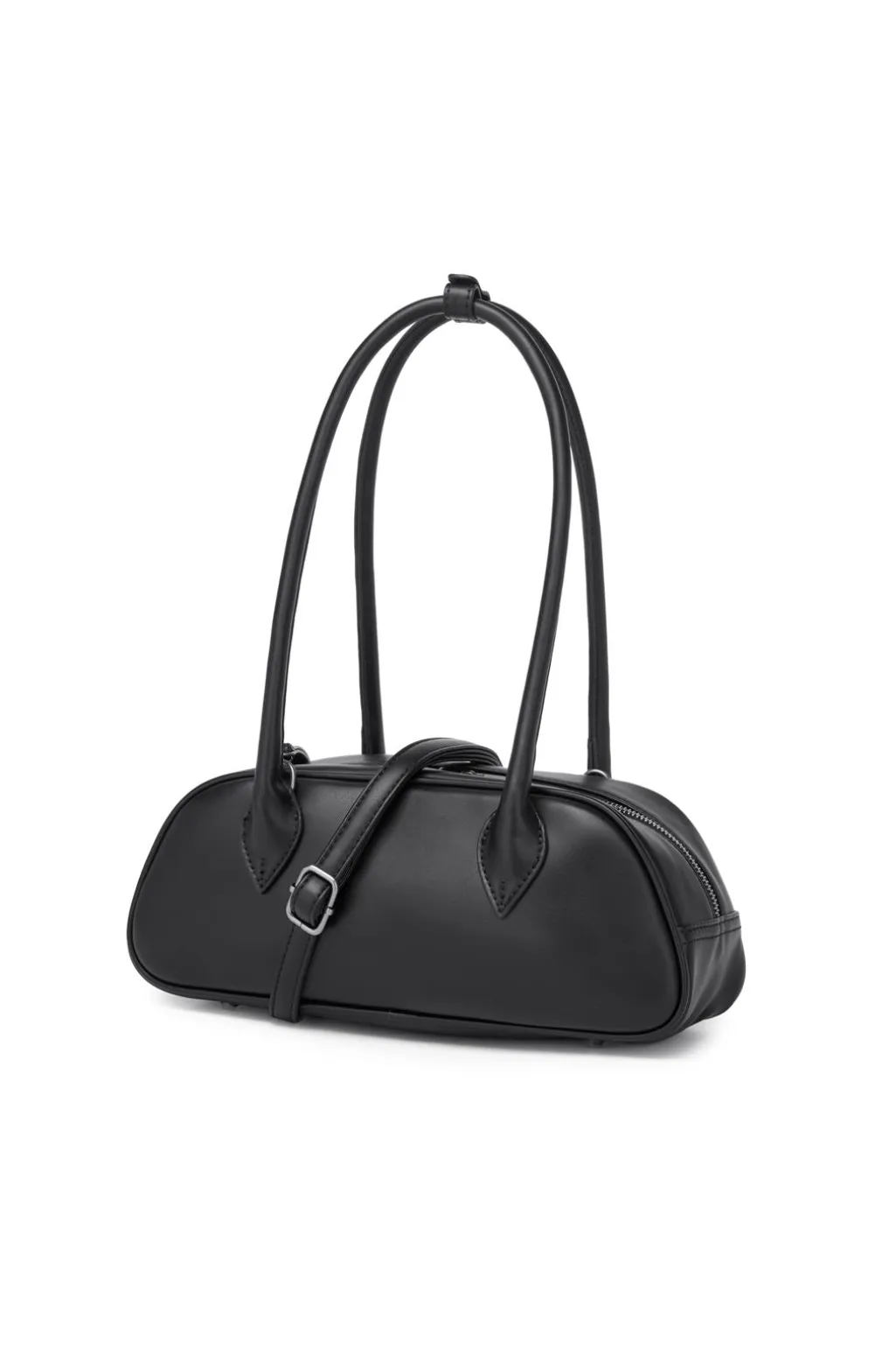 Lille bowlingtaske fra Noella i sort med et læderlook. Tasken er lavet af 100% polyester og har to lange håndtag.