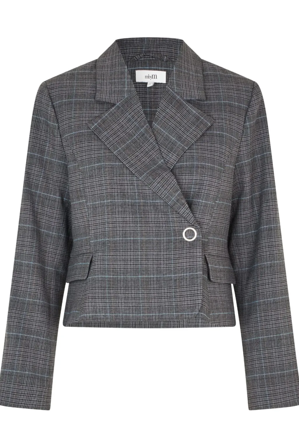 Grå ternet jakke fra MbyM med et klassisk design. Jakken har en skjortekrave, knaplukning og lommeklapper på begge sider.