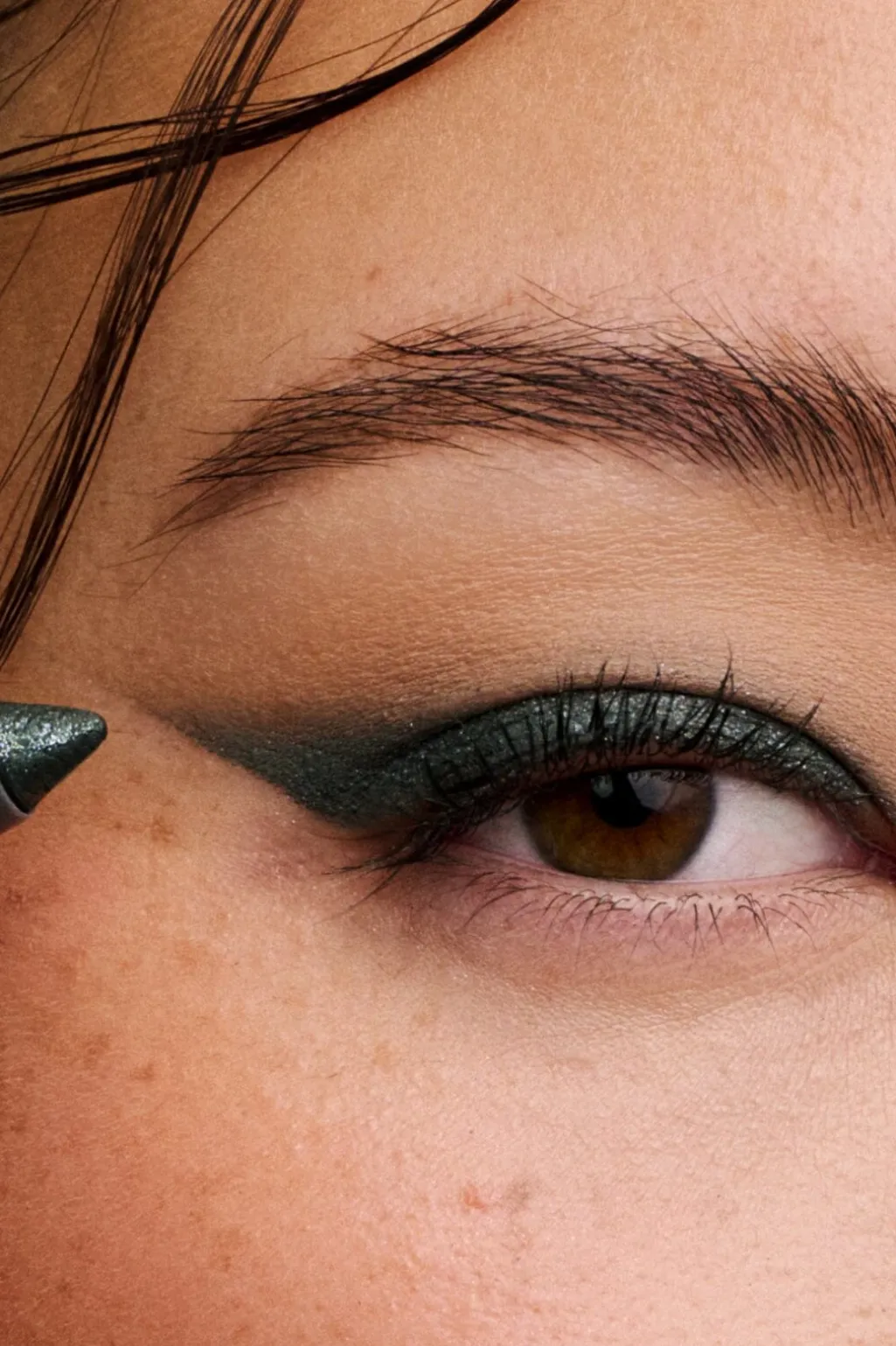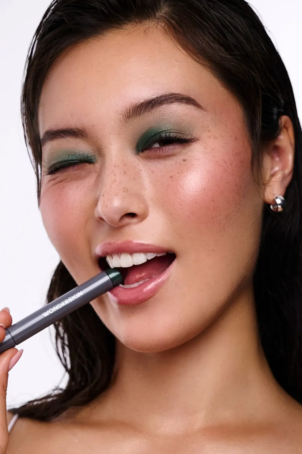 Cremet øjenskygge i stiftform med en mørkegrøn farve. Den cremede konsistens giver en behagelig påføring og holder hele dagen.