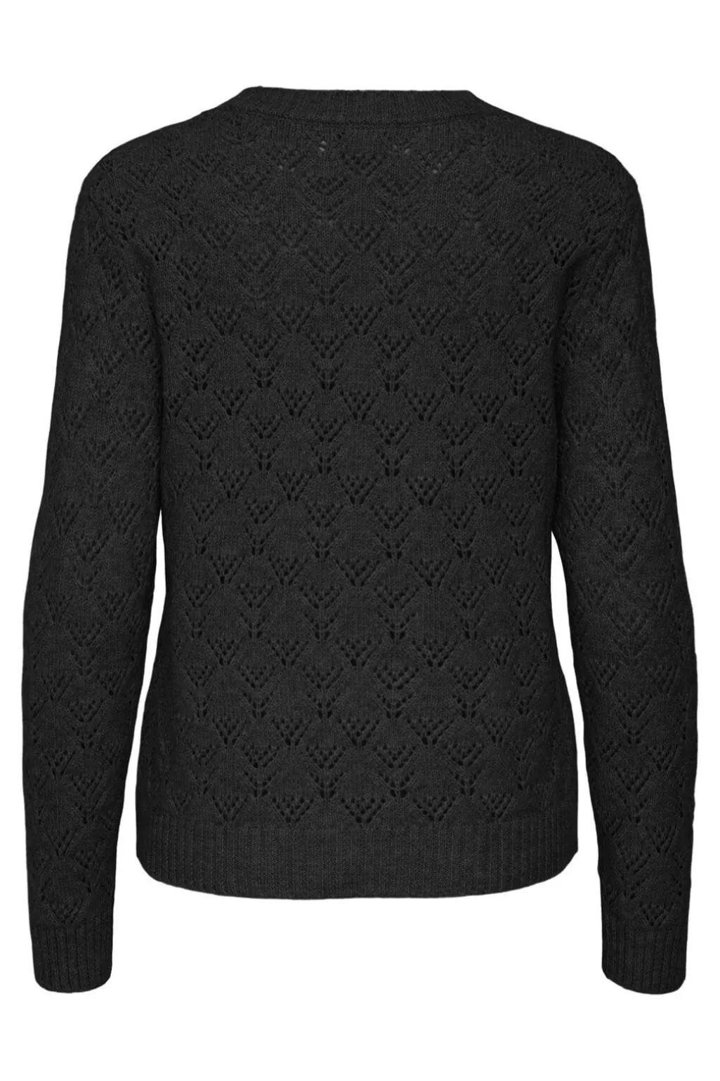 Sort pullover fra JDY med rund halsudskæring og lange ærmer. Trøjen har et åbent strukturstrikmønster og ribbede kanter ved halsen og bunden.