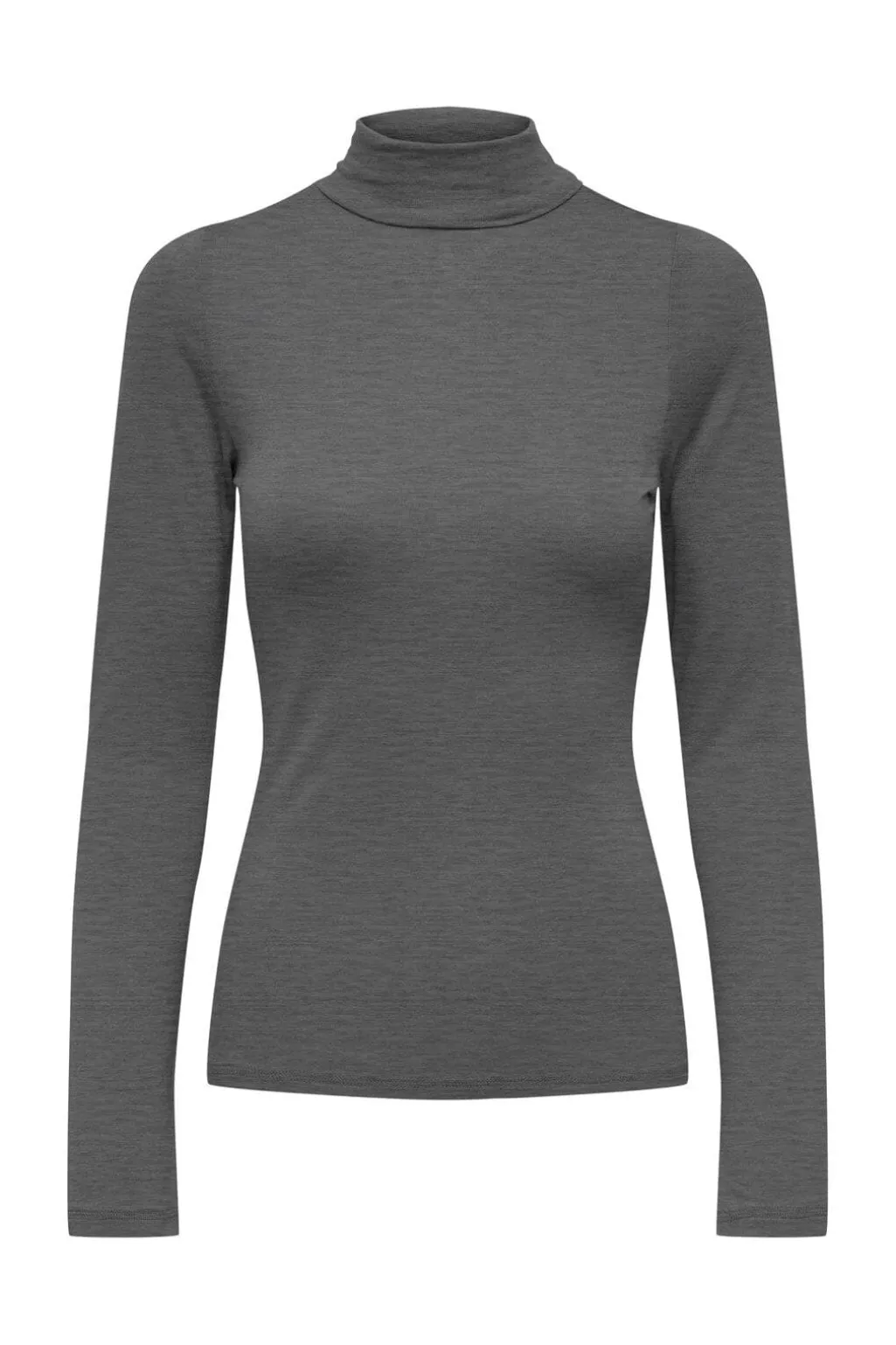 Rullekravetop fra JDY, lavet af en blanding med 85 % viskose og 15 % uld i en mørkegrå meleret farve. Toppen har lange ærmer og en tætsiddende pasform.