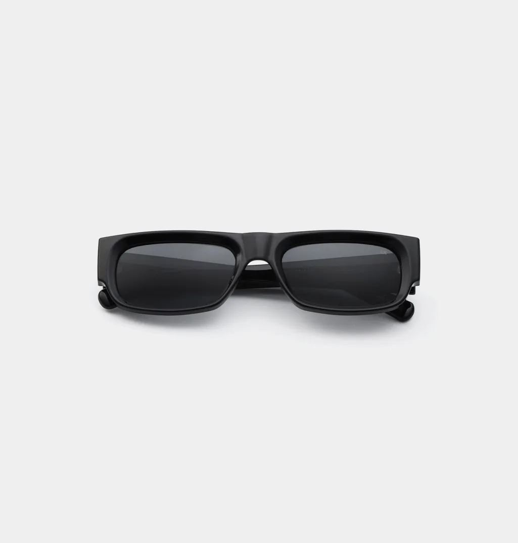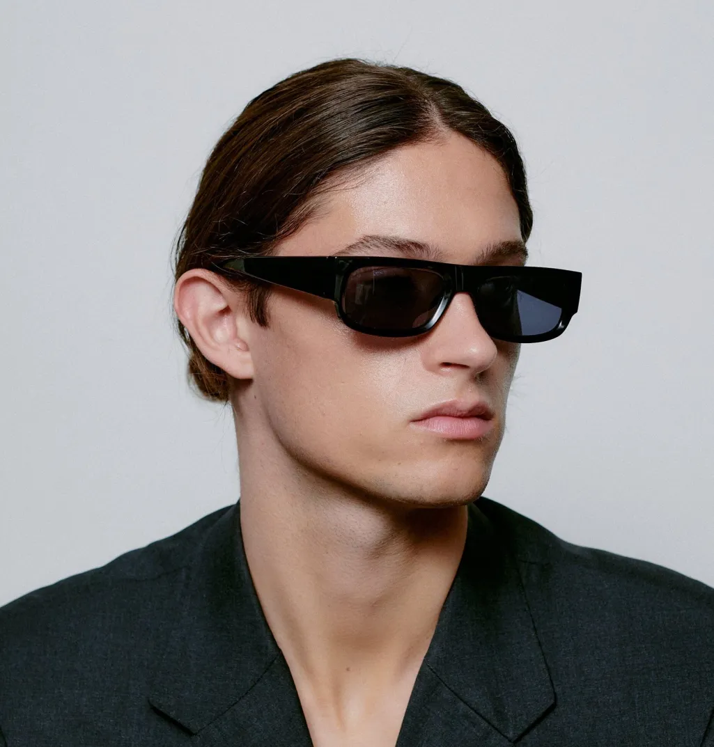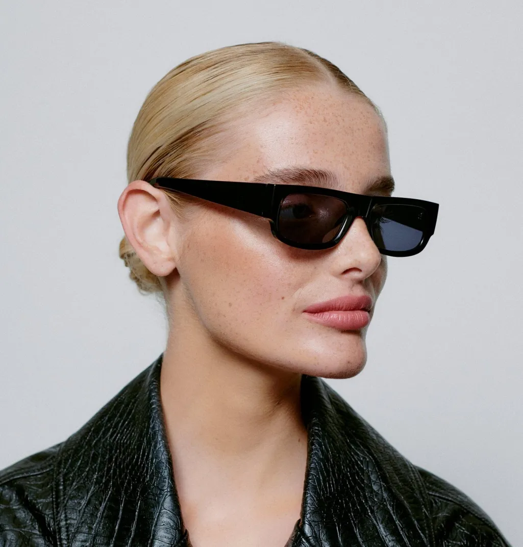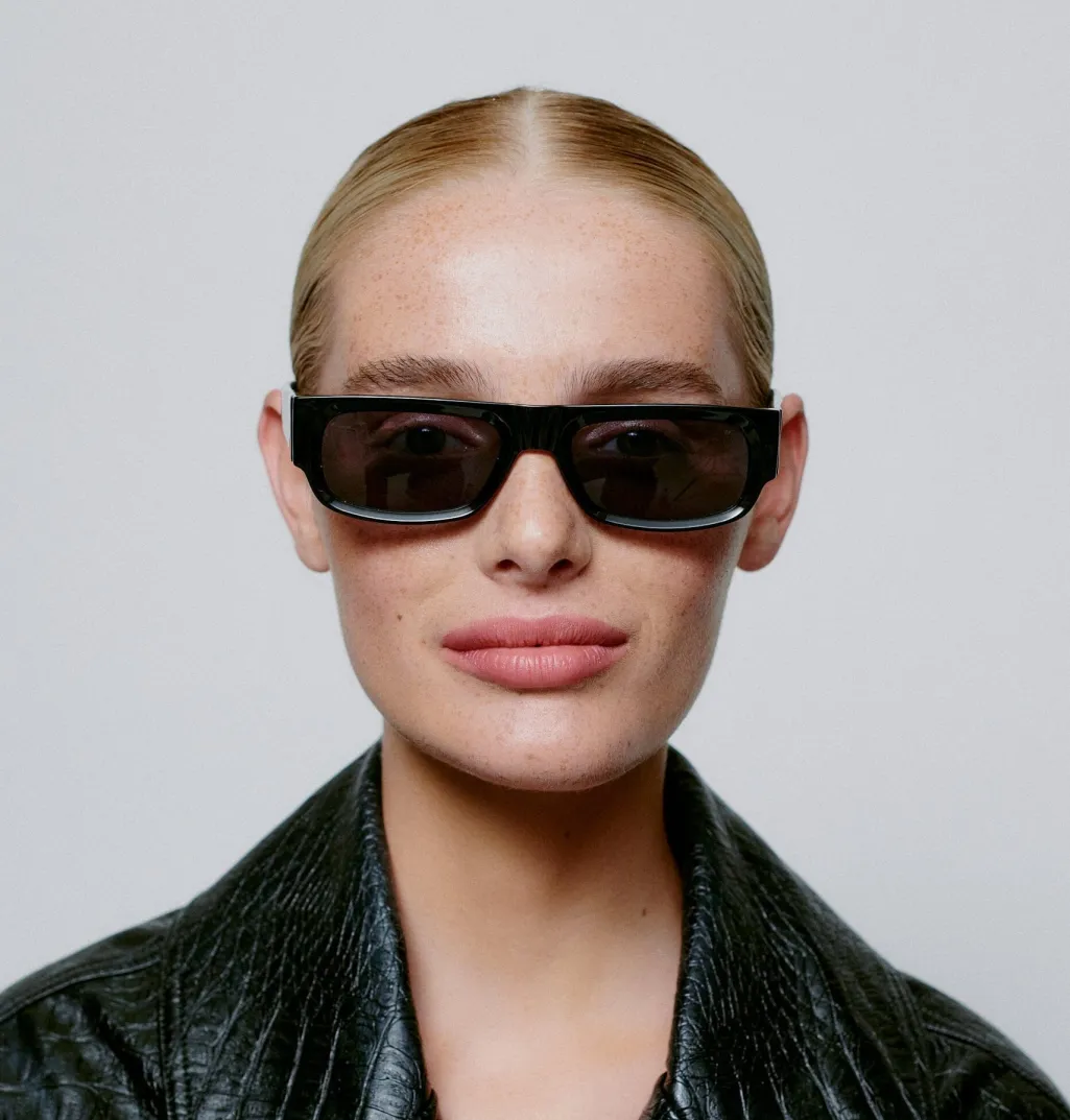 Sorte solbriller fra A. Kjærbede med rektangulær form. Brillerne har formbare stænger med metalkerne og er udstyret med UV 400-beskyttelse til dine øjne.