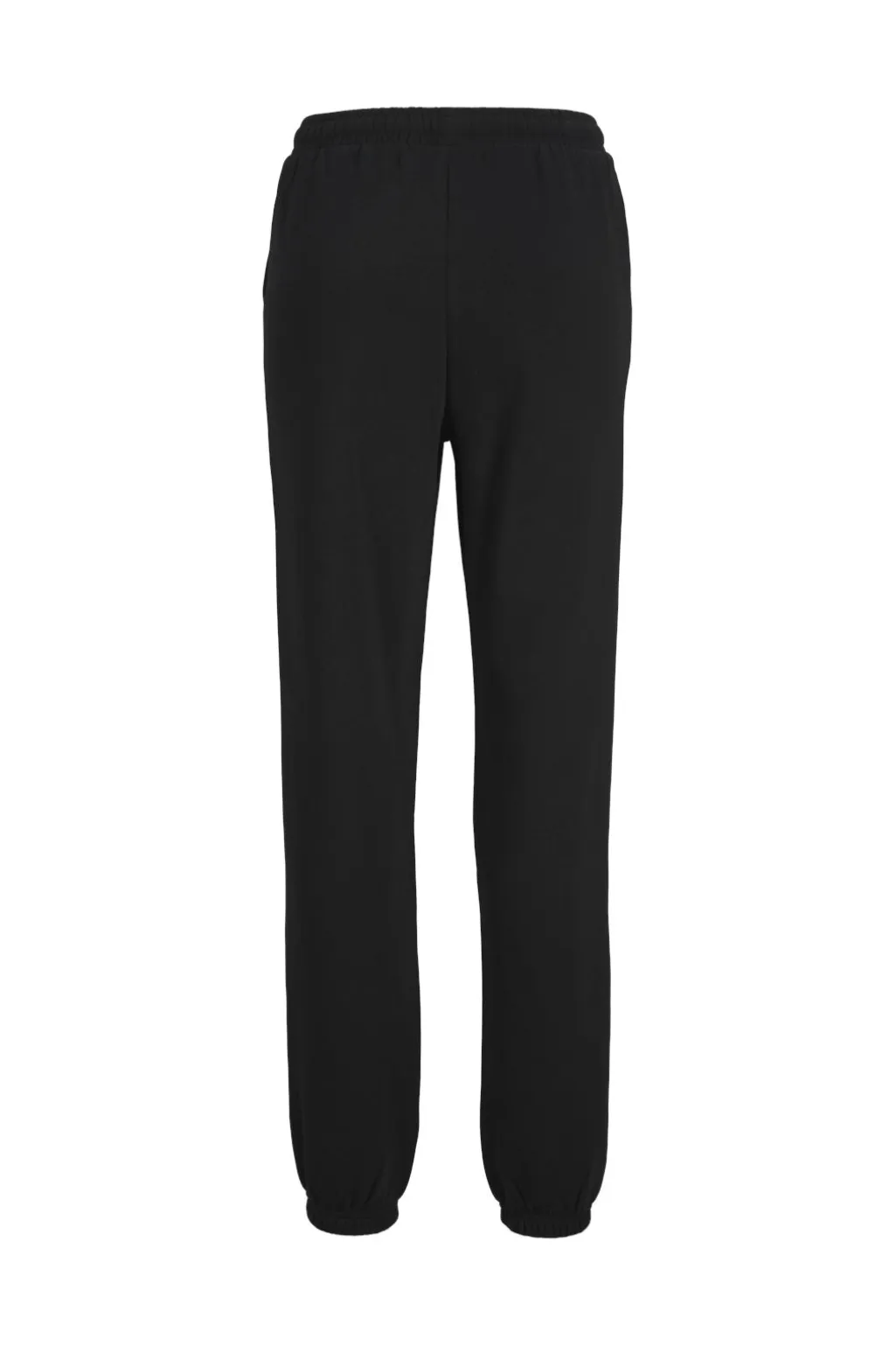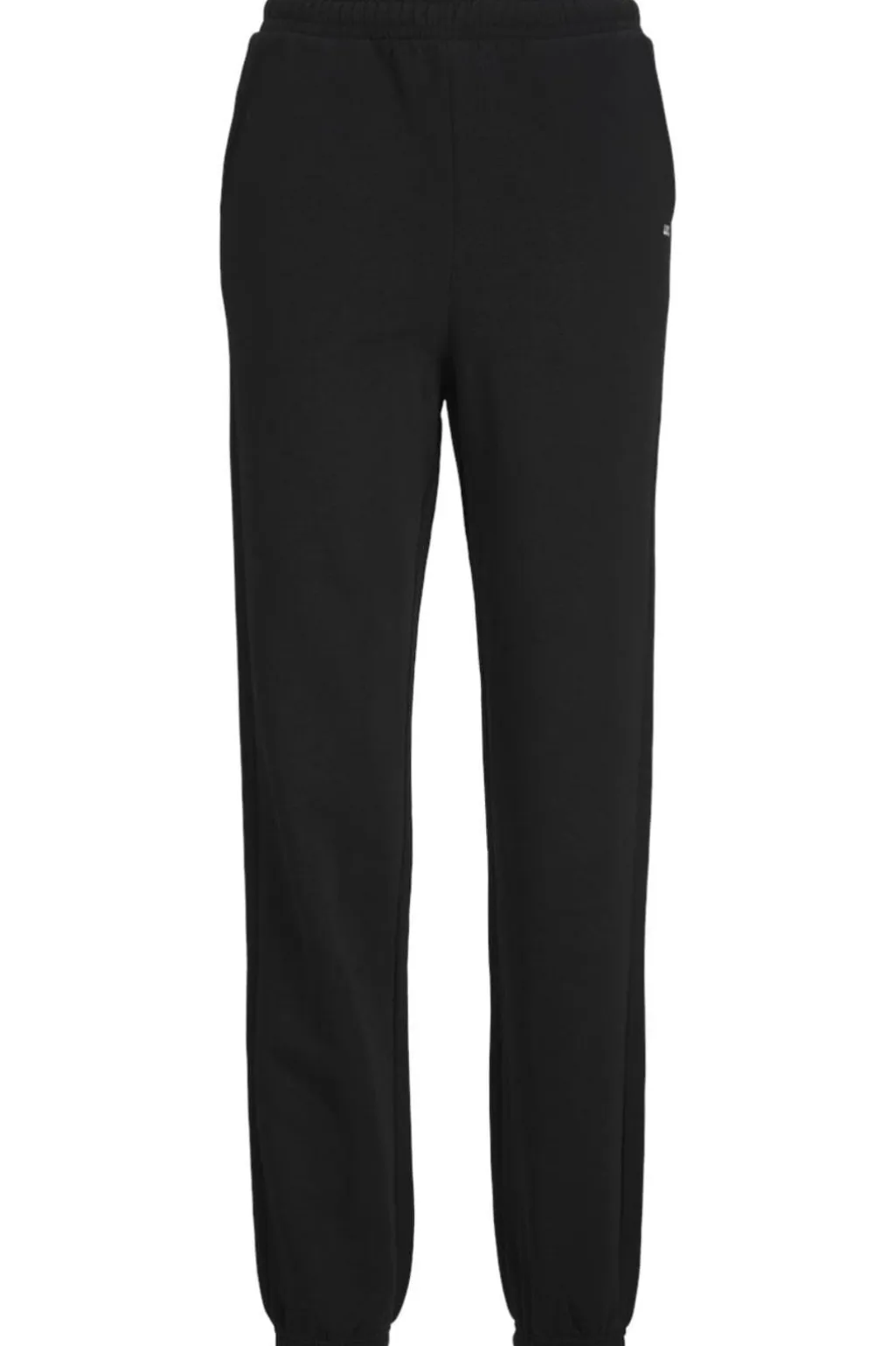 Sorte sweatpants fra Jjxx med høj talje og loose fit. Bukserne har både snøre og elastik i taljen samt elastiske benåbninger. Det strikkede jersey-sweatshirtstof giver god bevægelsesfrihed.