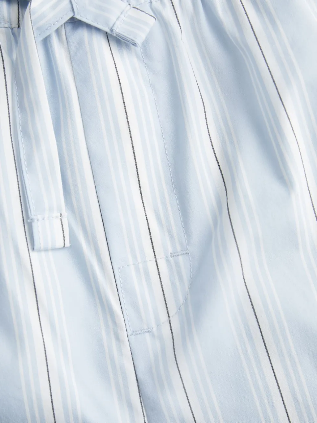Stribede poplin-shorts fra Jjxx i lyseblå og hvid. De har høj talje med elastik og snøre, løs pasform og en praktisk baglomme.