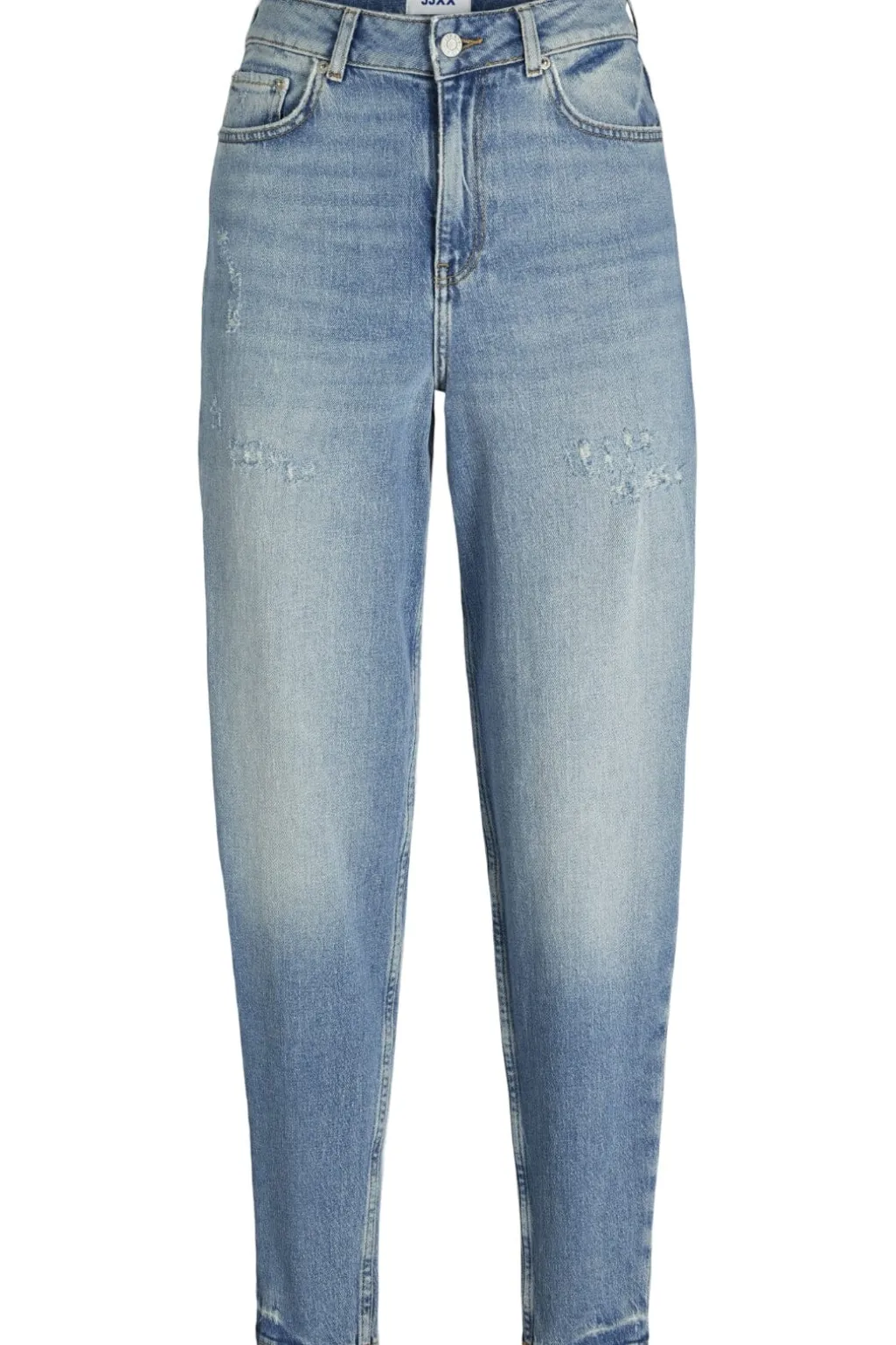 Mom jeans fra Jjxx i medium blå denim med høj talje og loose fit. Jeansene har slid-effekter og dekorative syninger, der giver et afslappet udtryk.