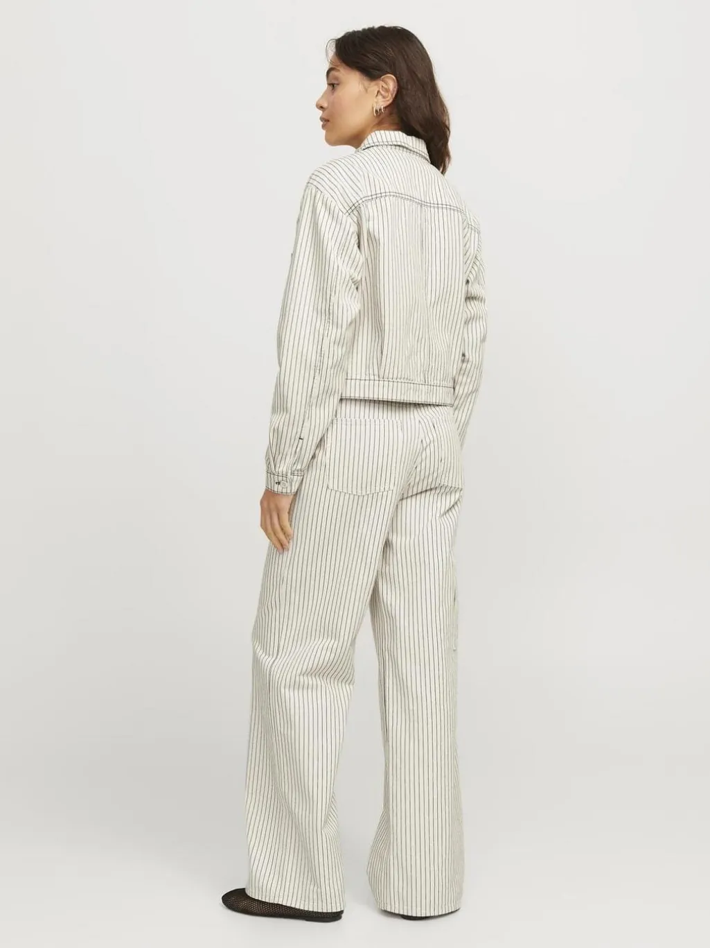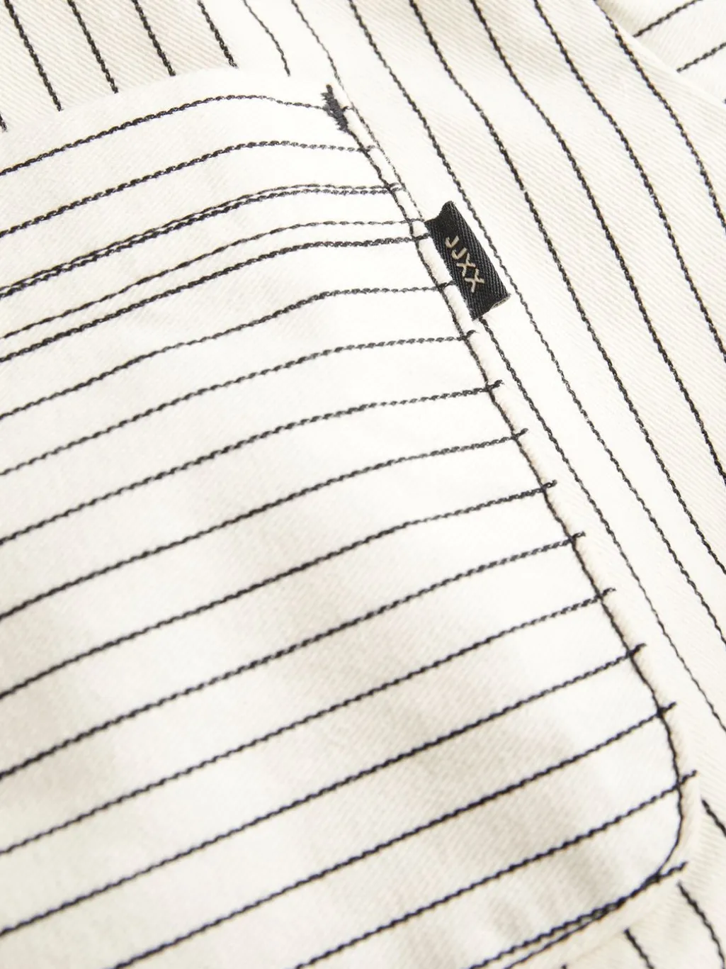 Overskjorte fra Jjxx i twill med sort pinstribe på lys bund. Den afslappede pasform og brystlommen gør den velegnet til både hverdag og lag-på-lag styling.