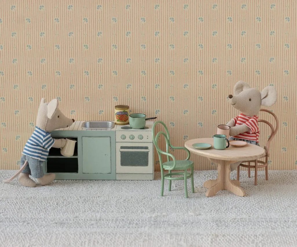 Køkkenbordet passer til SuitCasa musehuset fra Maileg, så det kan integreres direkte i eksisterende legesammenhænge med andre møbler.