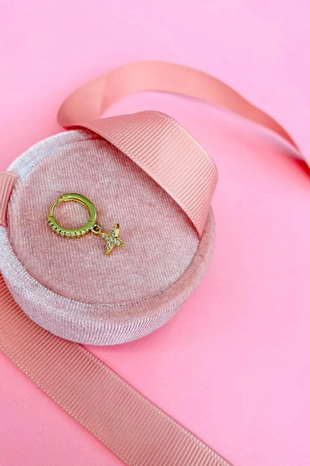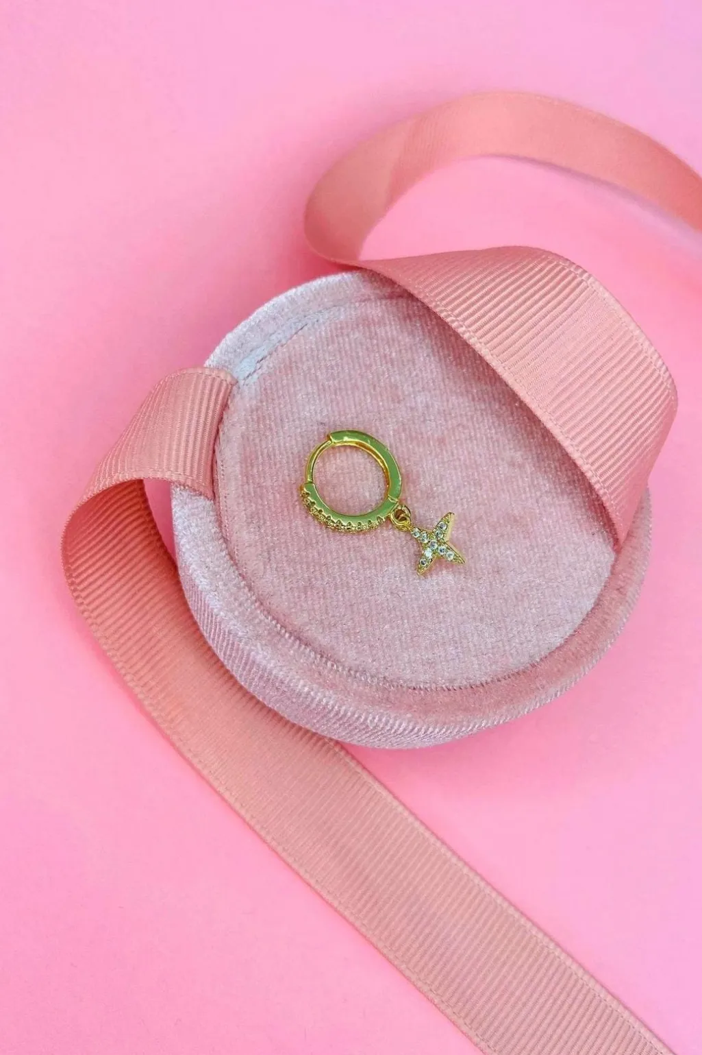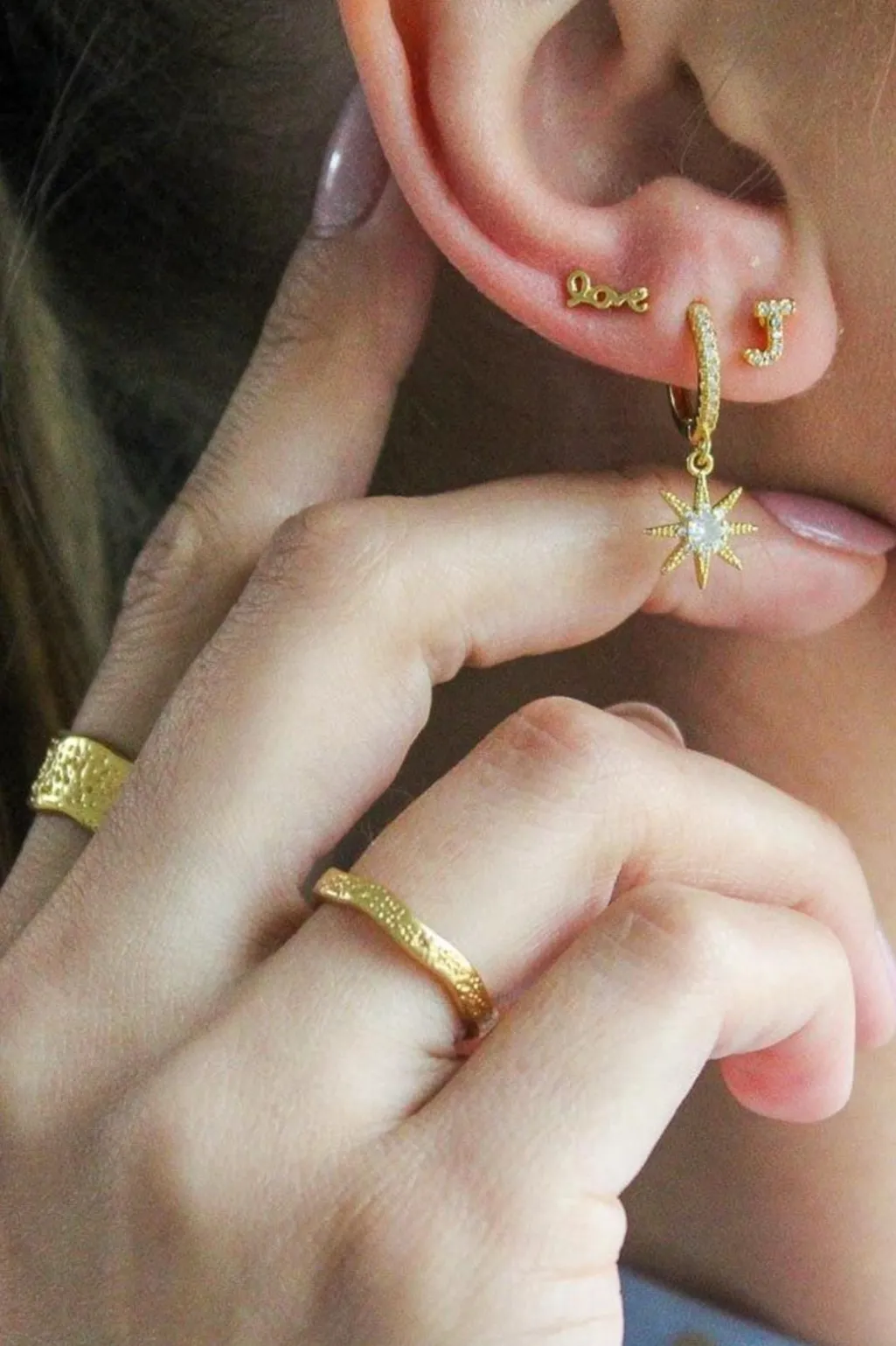 Kreol-øreringe fra Mellow Moon med måneformet vedhæng. De er lavet af forgyldt messing uden nikkel og bly, hvilket gør dem hudvenlige at bære.