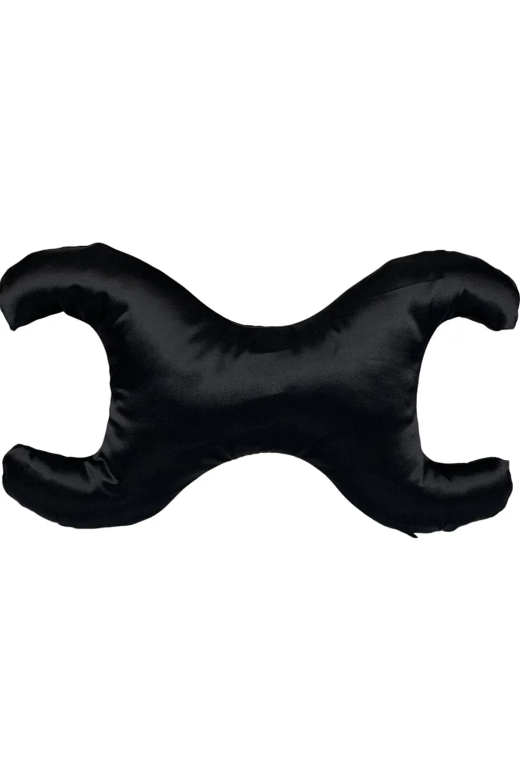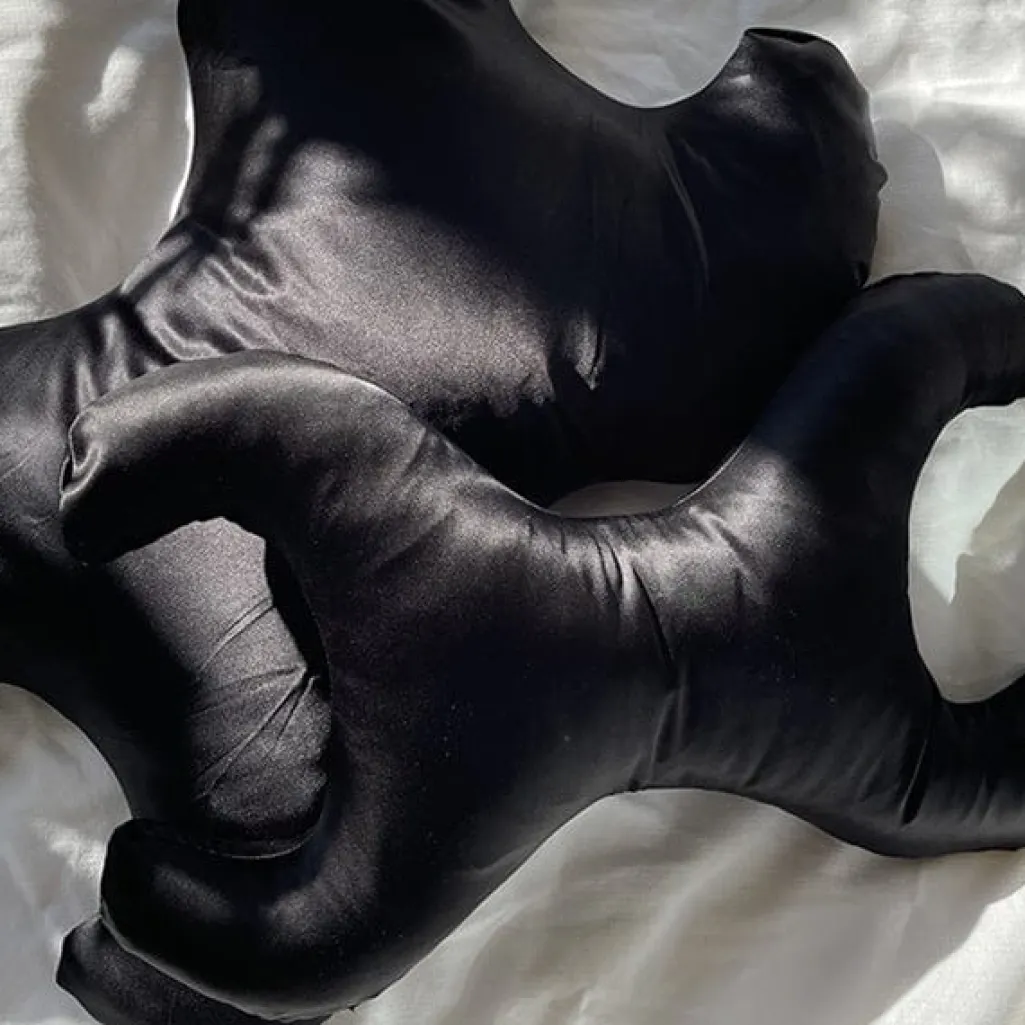Sort pude fra Save My Face med silkebetræk. Puden har en særlig form og er fyldt med syntetiske fibre, der er modstandsdygtige over for bakterier.