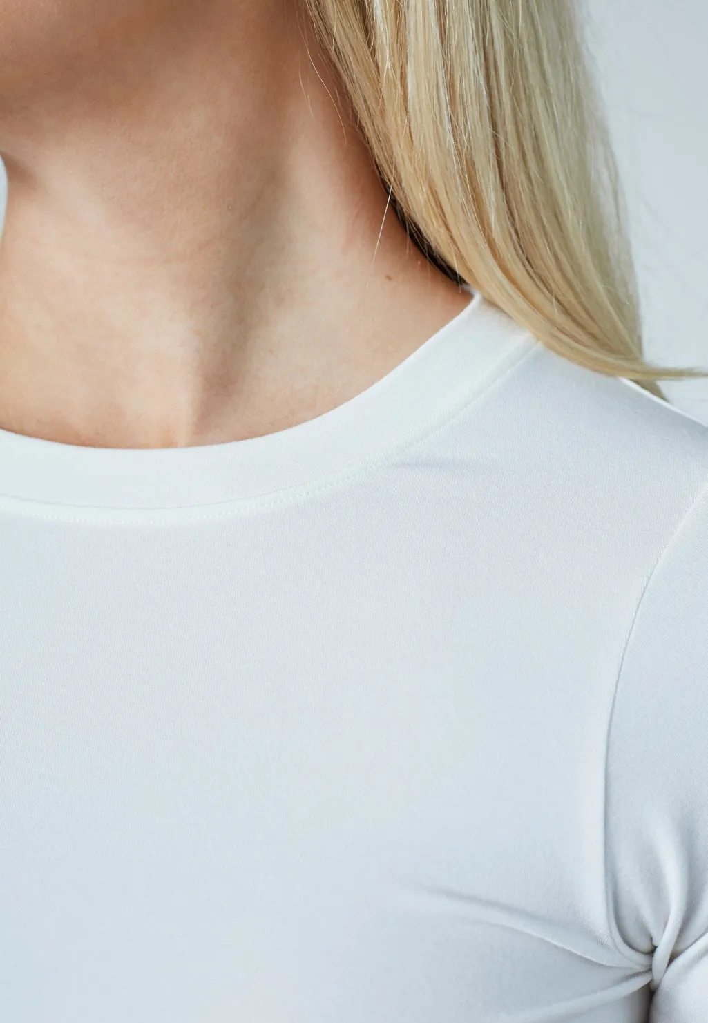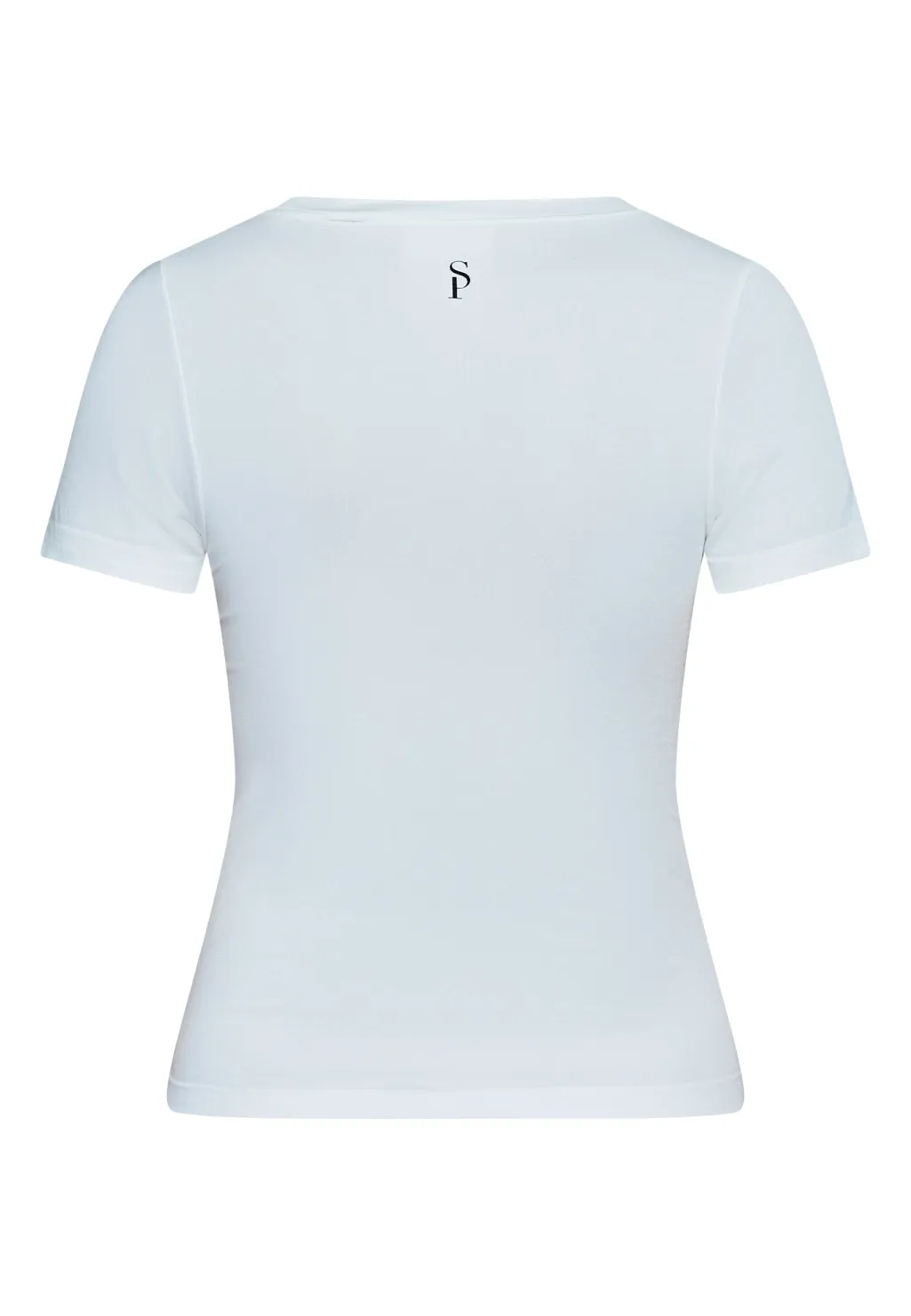 Hvid T-shirt fra Sisters Point med en tætsiddende pasform og rund halsudskæring. T-shirten er kortærmet og ensfarvet.