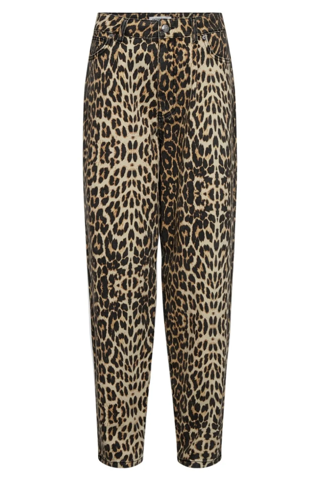 Plisserede bukser fra Co’Couture i khaki med leopardmønster. Bukserne har en normal pasform og går til midt på læggen. De er lavet af bomuld med stretch.