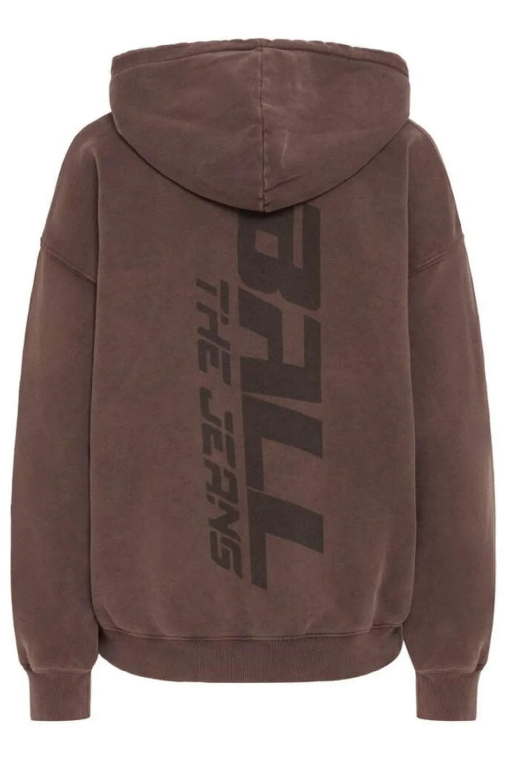 Brun hoodie fra Ball, lavet af 100 % økologisk bomuld. Hoodien har dekorative syninger og bindedetaljer, der giver den karakter.