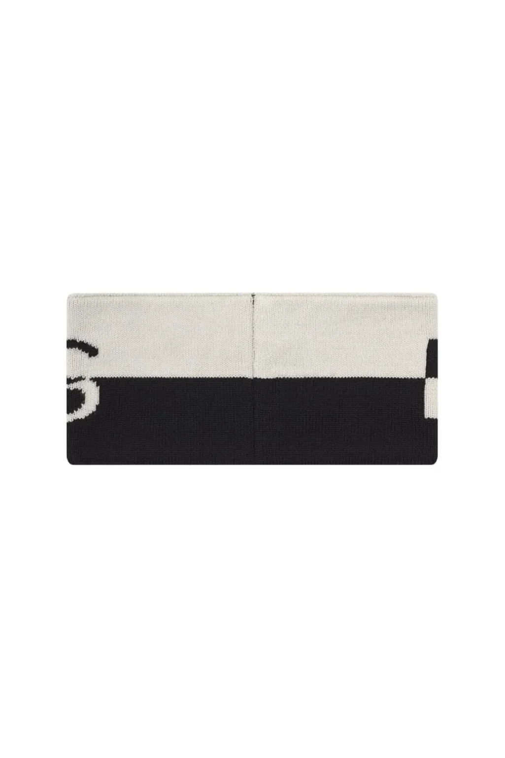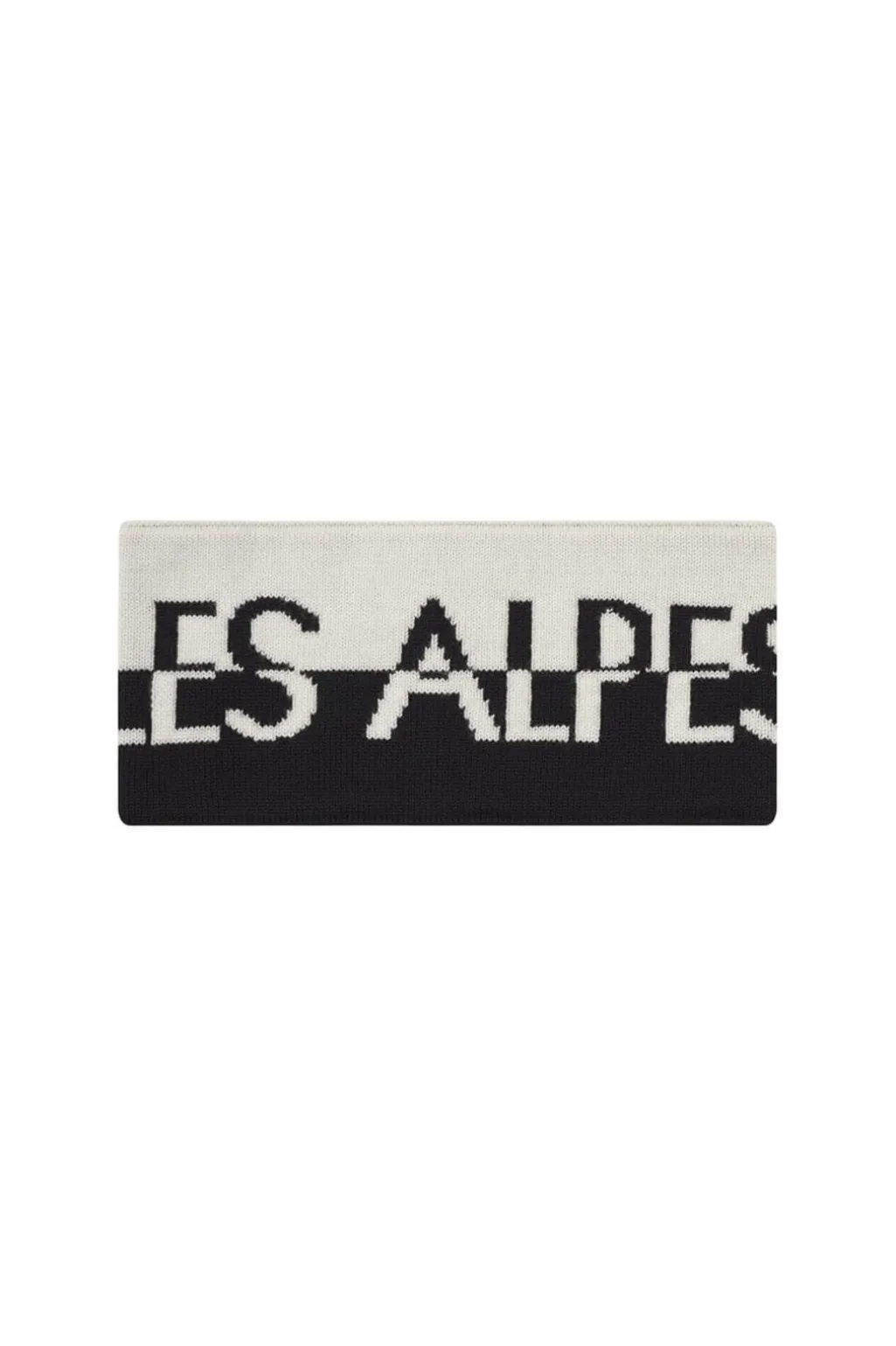Sort pandebånd fra Twist & Tango, lavet af 100 % ekstra fin mulesing-fri merinould. Pandebåndet har teksten LES ALPES i sort og hvid.