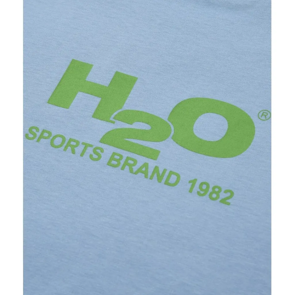 Lyseblå t-shirt fra H2O med grønt logo på forsiden. T-shirten har en regular fit og er fremstillet af bomuld.