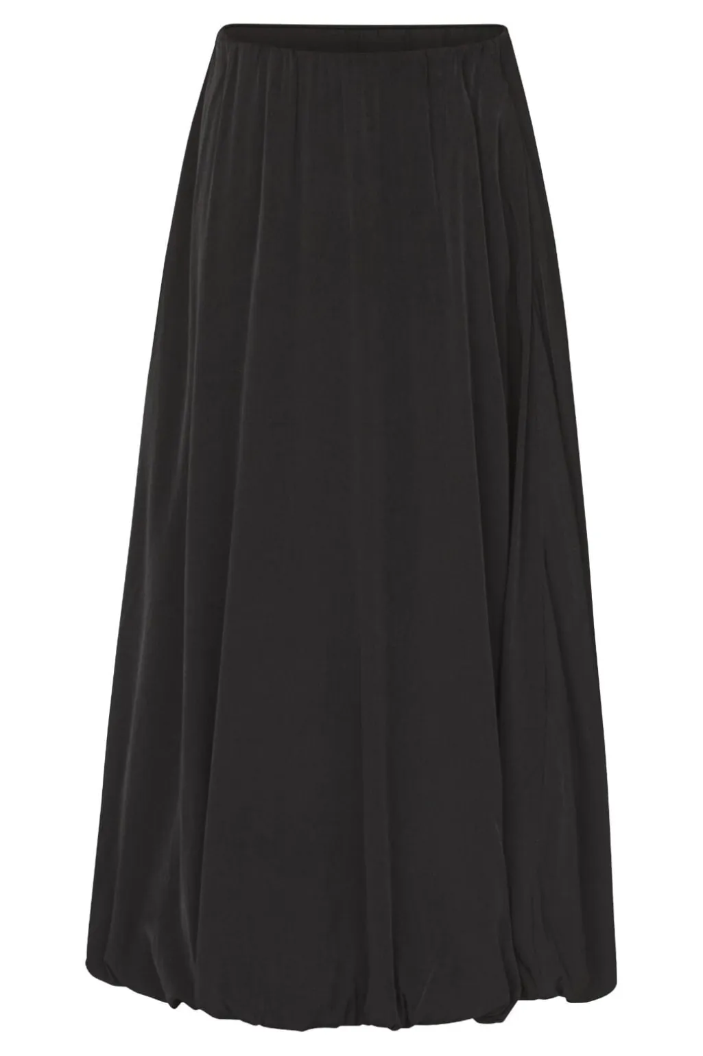 Sort lang nederdel fra Love & Divine med løs pasform. Nederdelen har elastik i taljen og bunden samt flæsedetaljer, der giver et blødt fald.