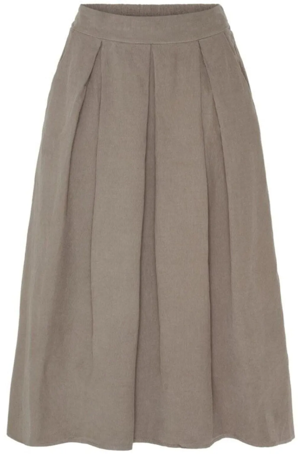 Nederdel fra Marta Du Chateau i en beige-grå nuance. Nederdelen har plisseringer på forsiden og en elastisk linning på bagsiden.