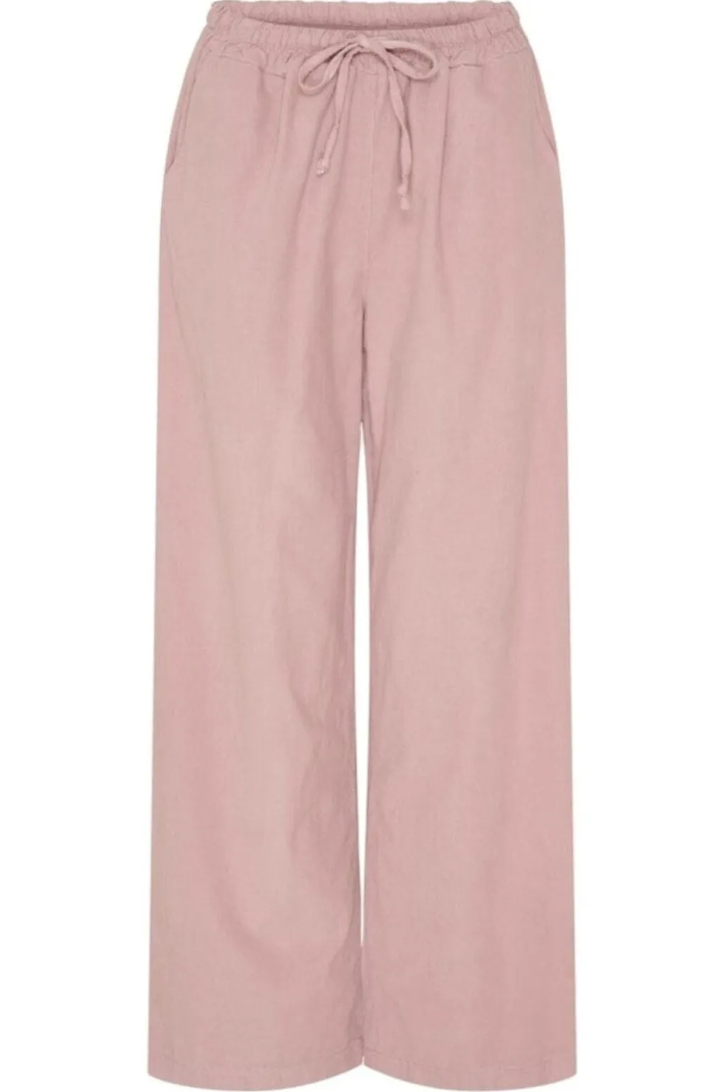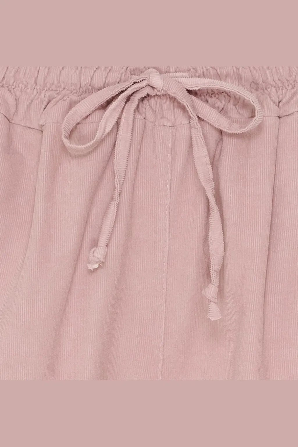 Lyserøde bukser fra Marta Du Château, lavet af babyfløjl i 100 % bomuld. Den ensfarvede lyserøde nuance giver bukserne et afslappet udtryk.
