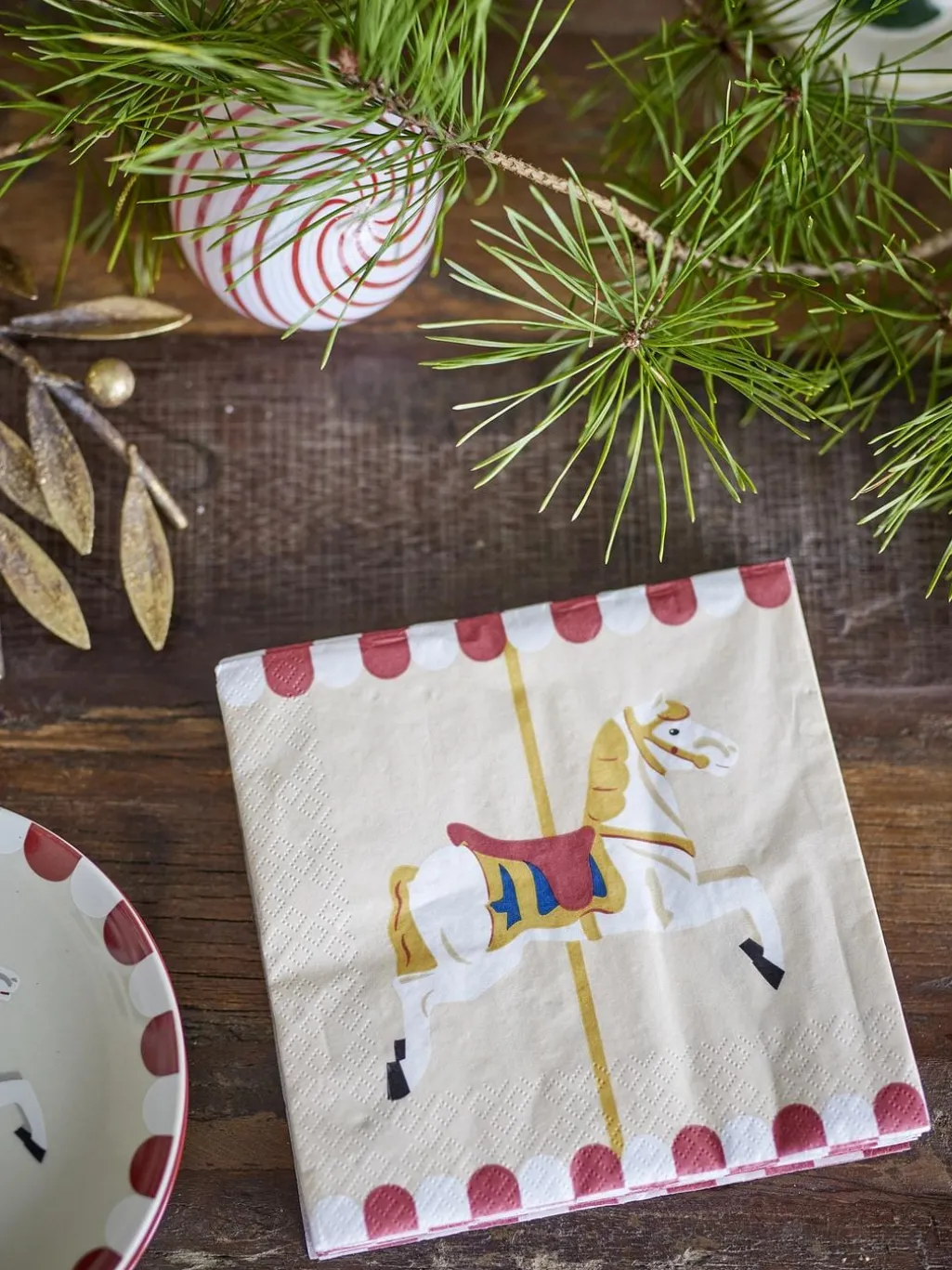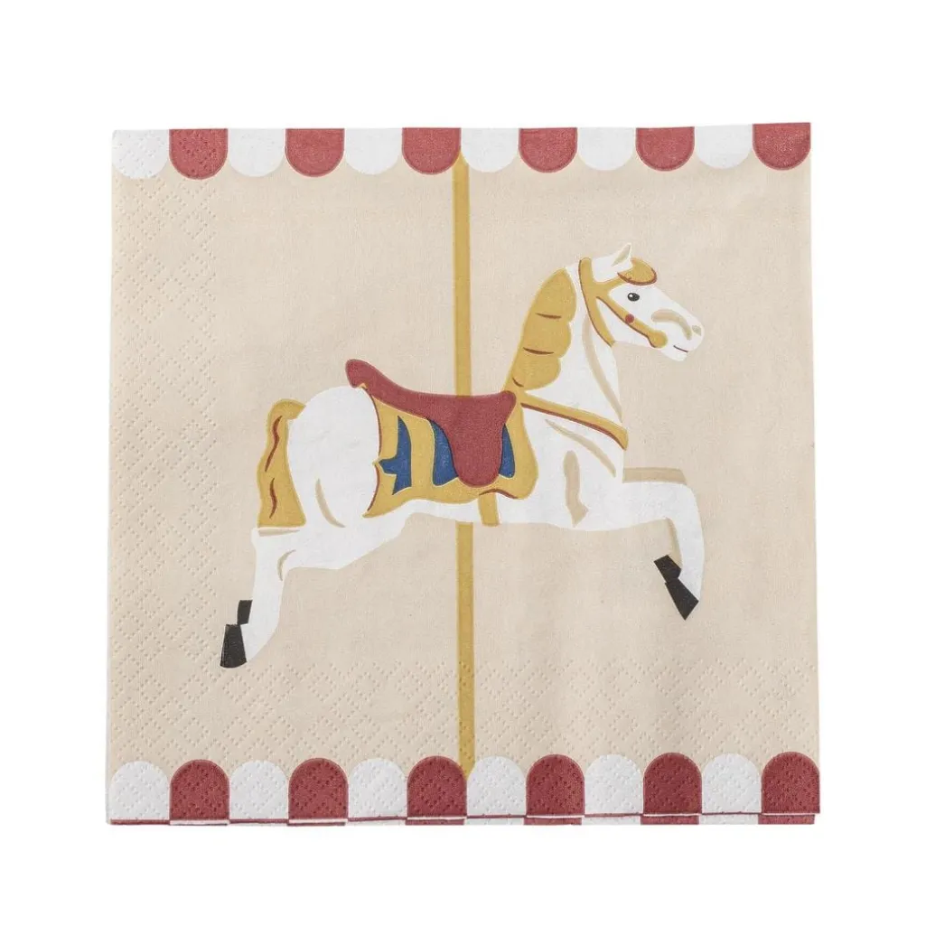 Merry-go-round servietterne fra Bloomingville kommer i en pakke med 20 smukke papirsservietter, prydet med forskellige karruselmotiver. Disse servietter tilføjer et legende og nostalgisk touch til julebordet eller andre festlige lejligheder og skaber en hyggelig atmosfære.