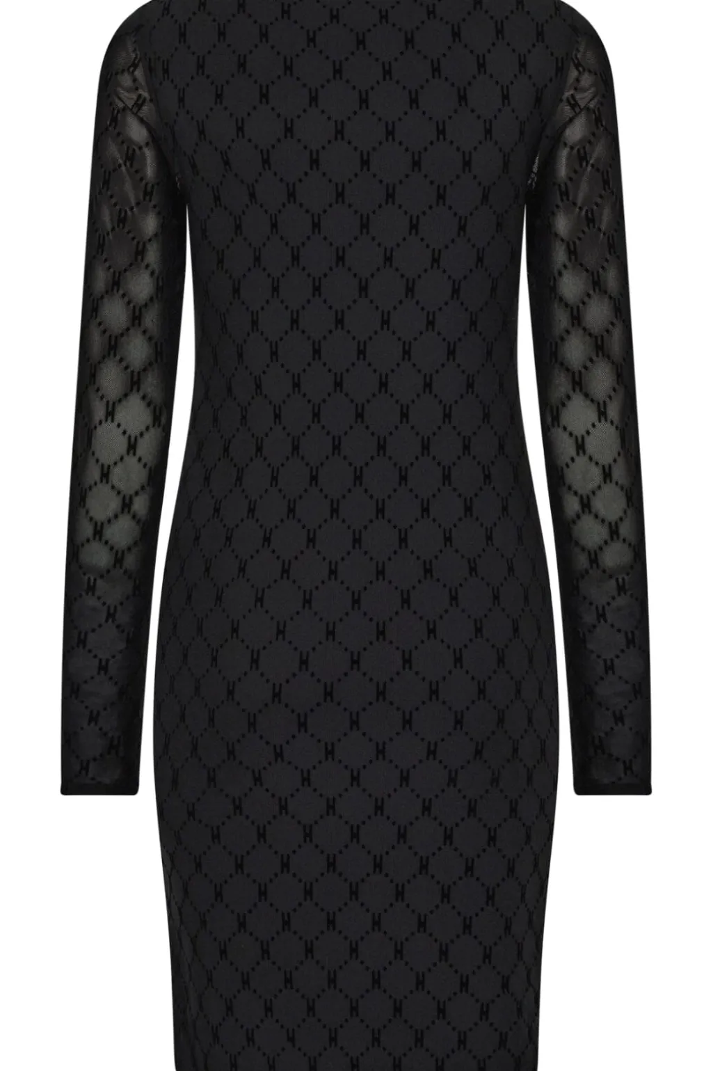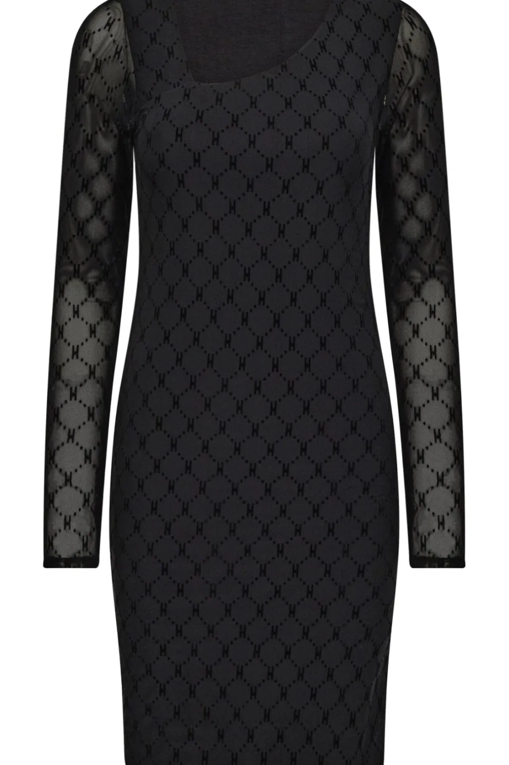 Sort meshkjole fra Hype The Detail med geometrisk mønster. Kjolen har en firkantet udskæring og lange ærmer. Meshstoffet skaber et fint, gennemsigtigt udtryk.