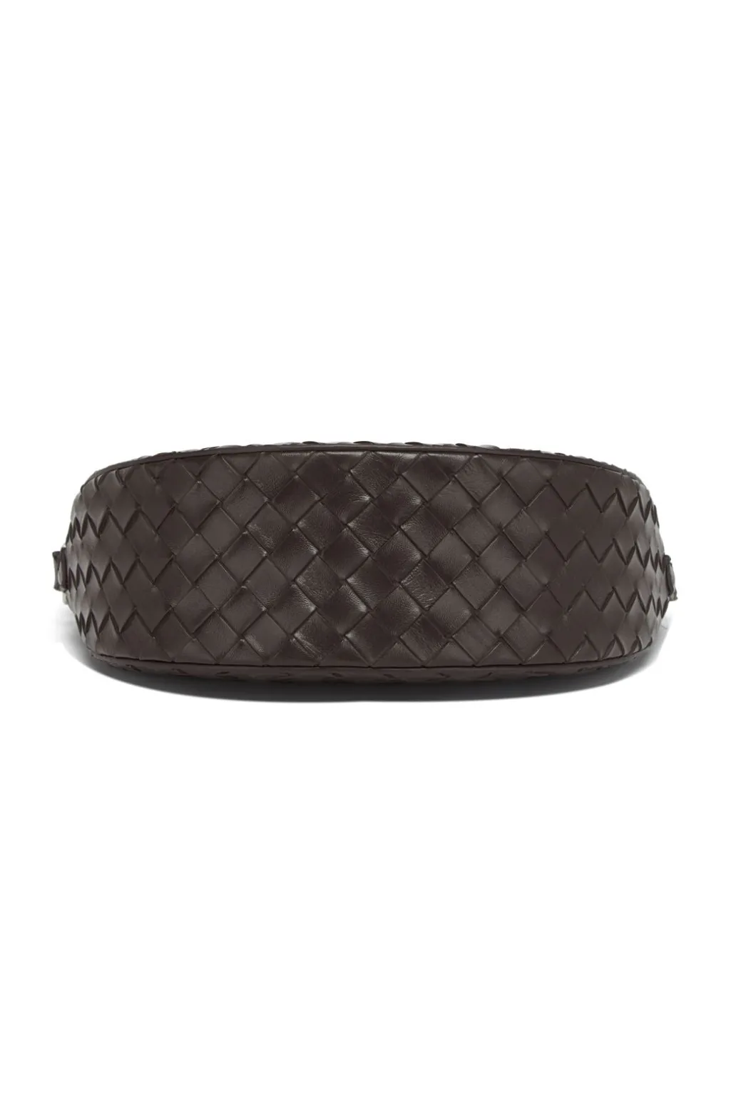 Skuldertaske fra Noella i brun kaffe-farve, lavet af 100 % polyurethan med en vævet tekstur og en halvmåneformet silhuet.