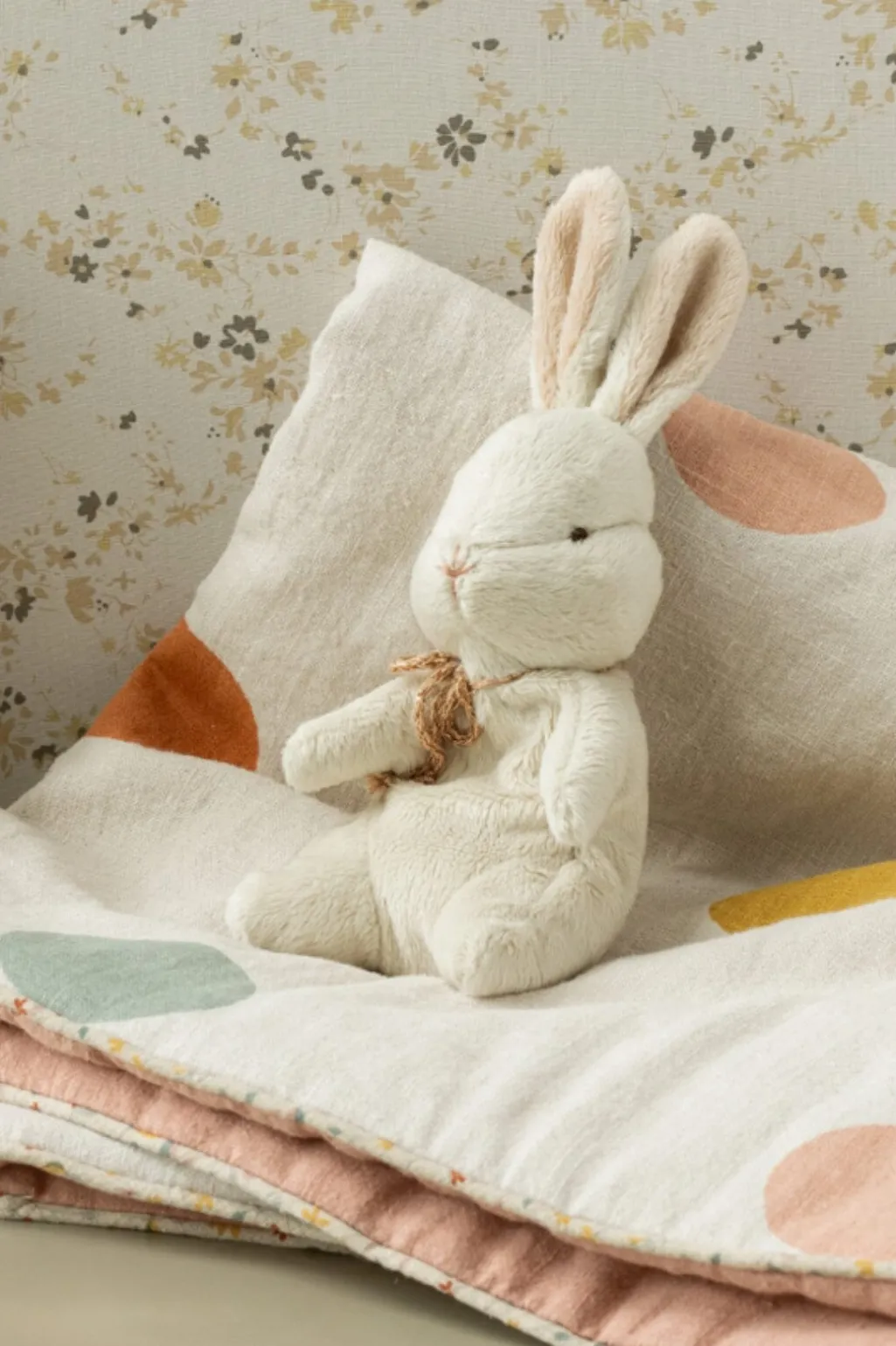 Det bløde plysmateriale gør kaninen behagelig at holde om og nem for små hænder at gribe fat i.
