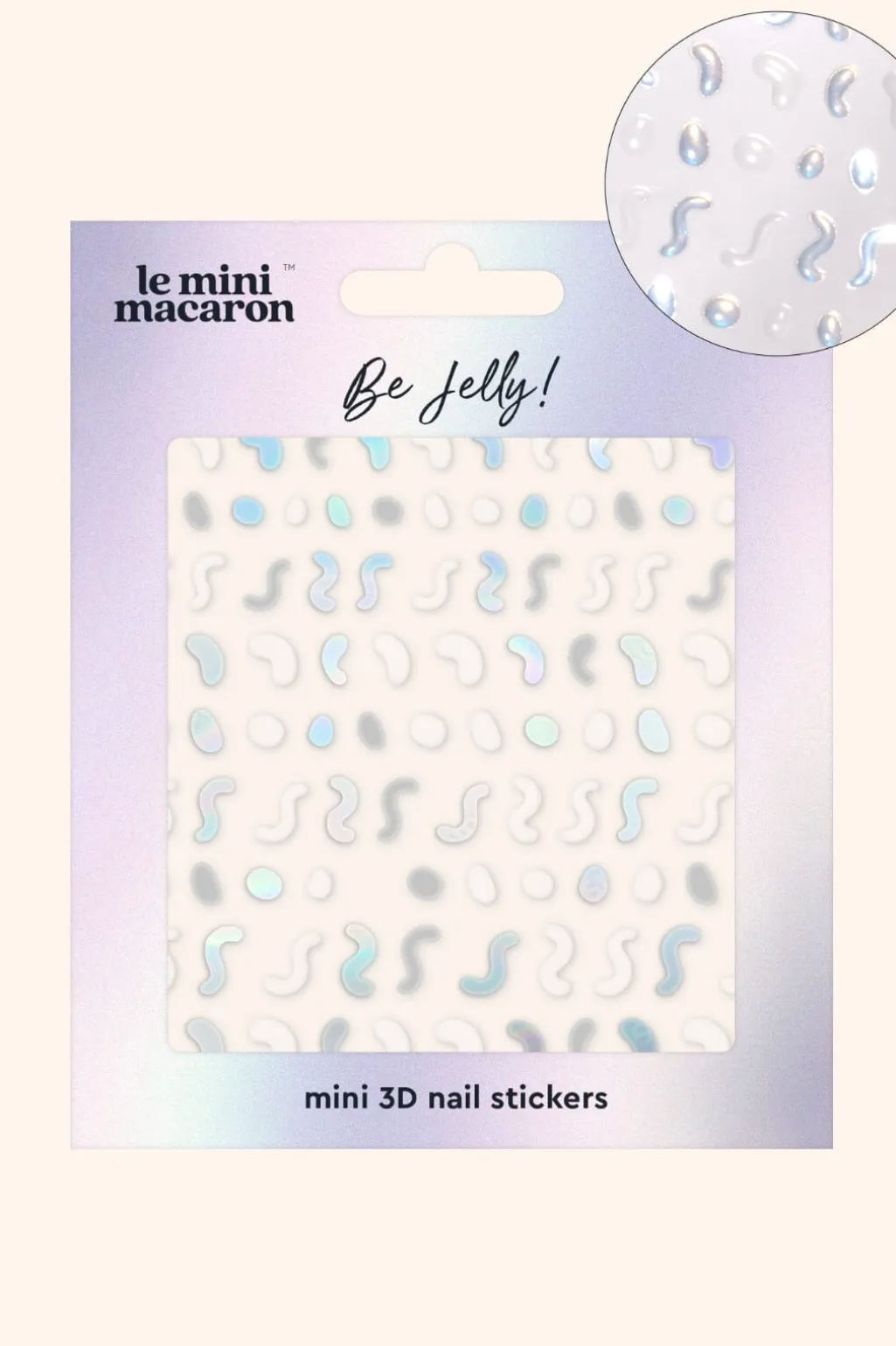 Mini 3D negleklistermærker med gelé-lignende designs i hvid og lyseblå. Klistermærkerne har en særlig lysende effekt og skaber et tredimensionelt look på neglene.