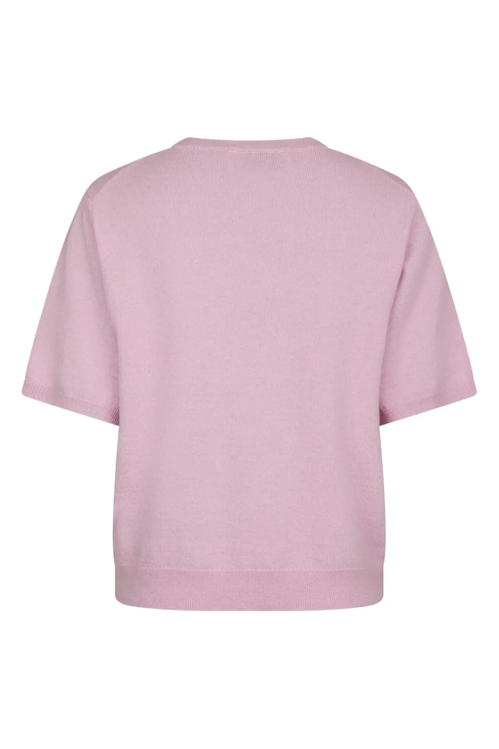 Lyserød striktrøje fra Neo Noir, lavet af 100 % uld. Trøjen har korte ærmer, en rund halsudskæring og en løs pasform.