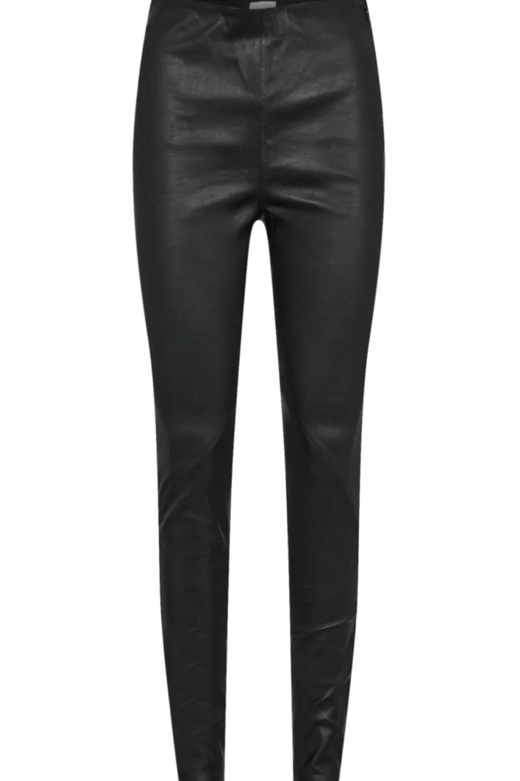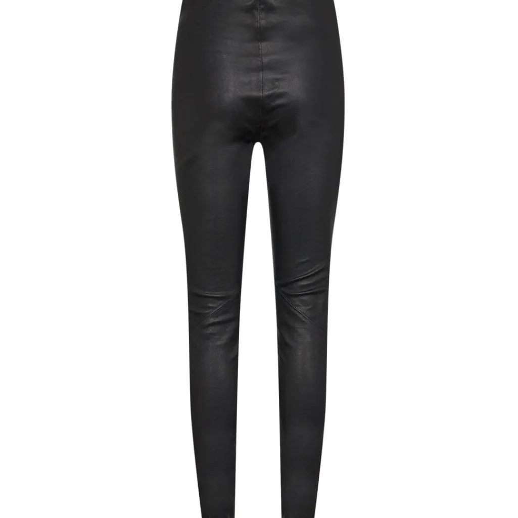 Sorte bukser fra Gossia i 100 % lammeskind med tætsiddende pasform. Bukserne har en glat overflade og en regulær taljehøjde, der giver et rent og enkelt udtryk.